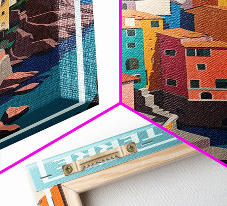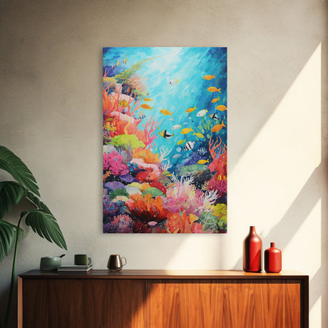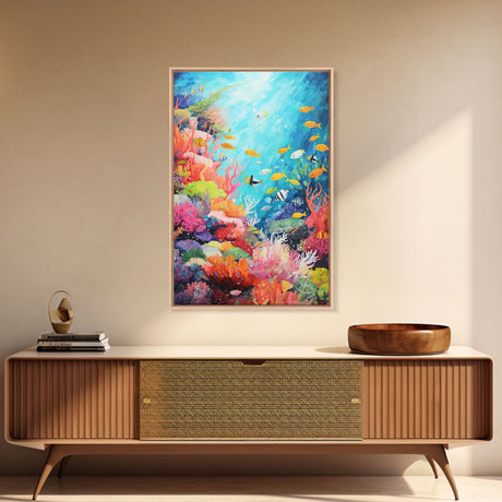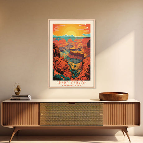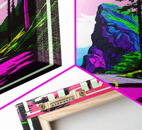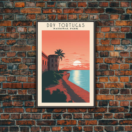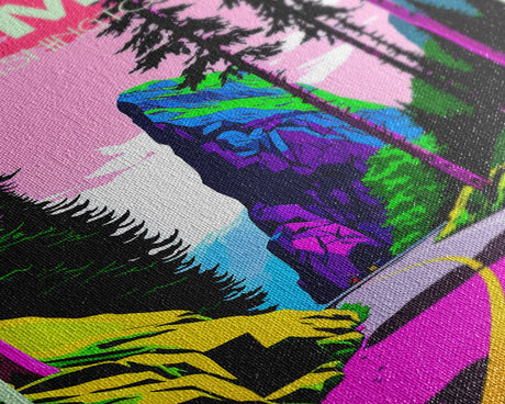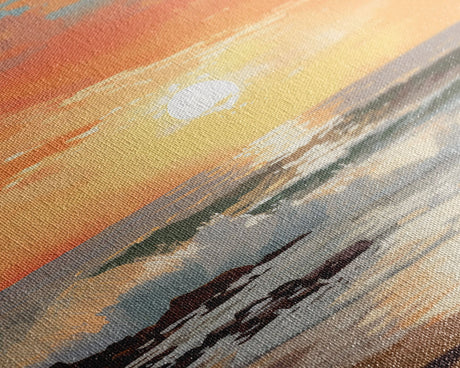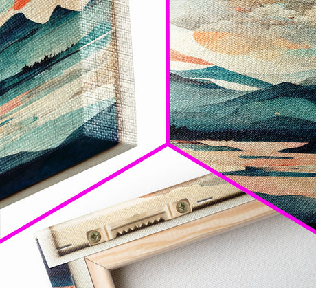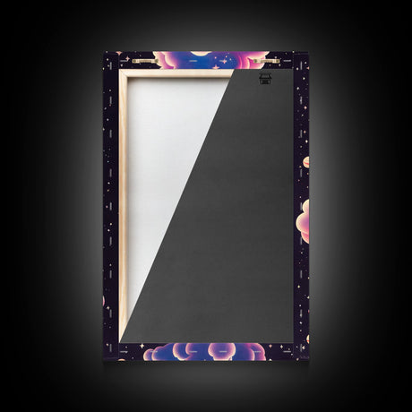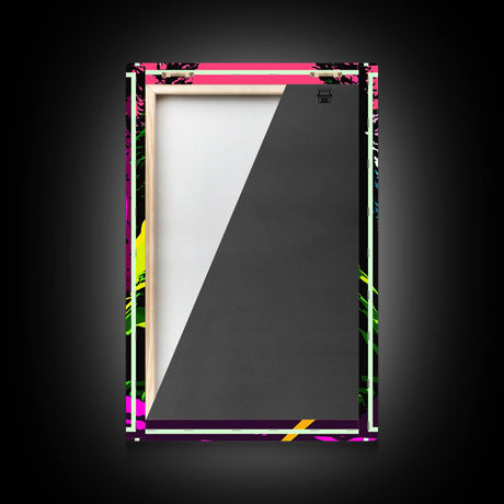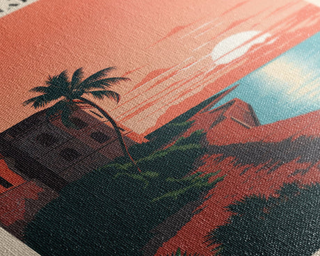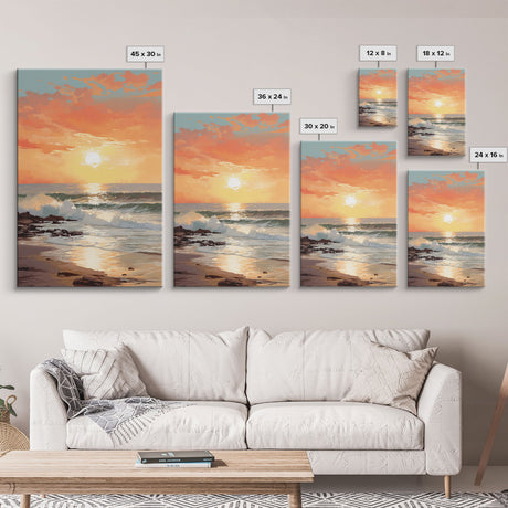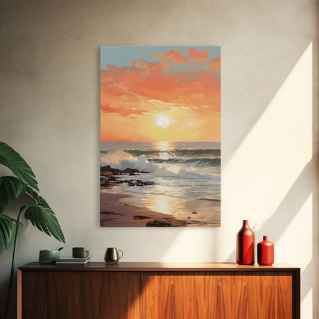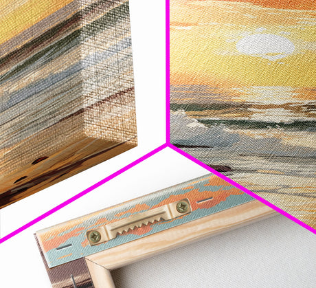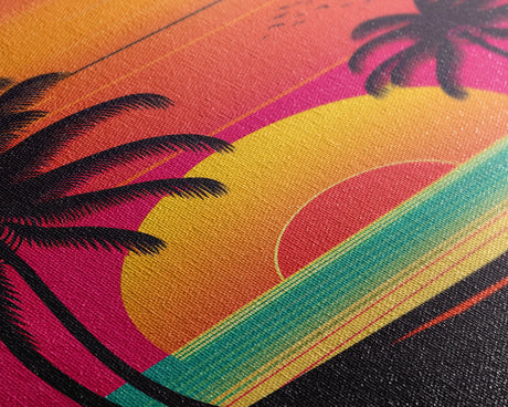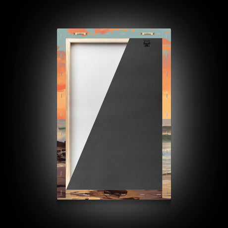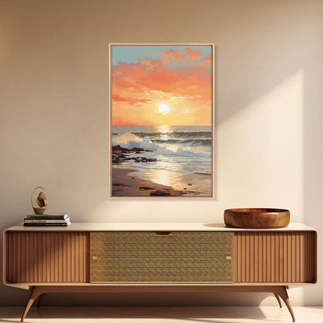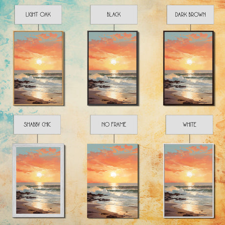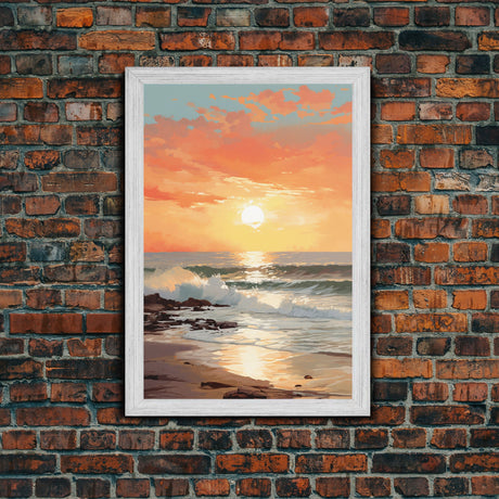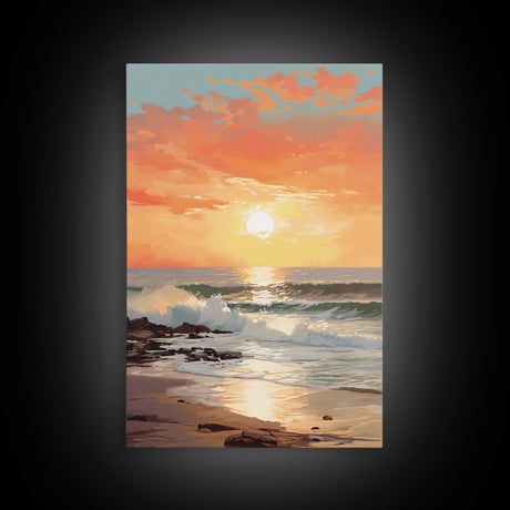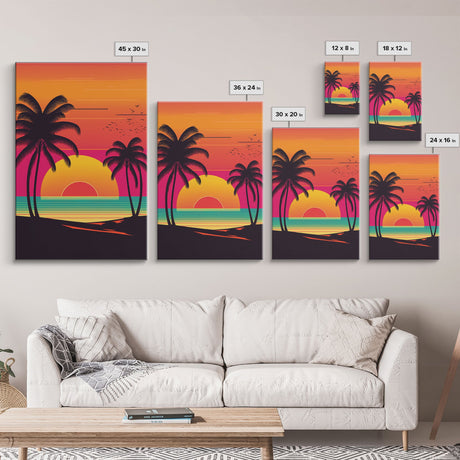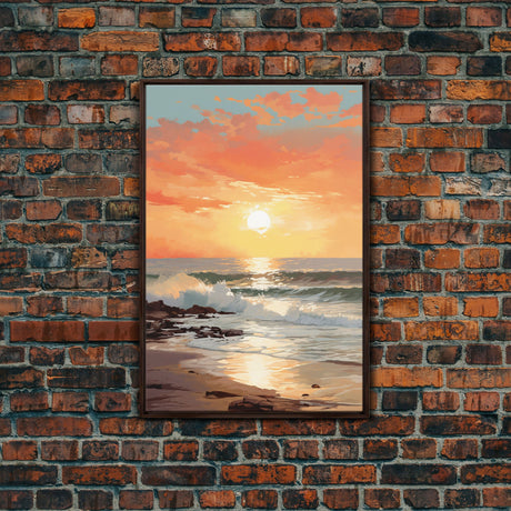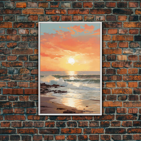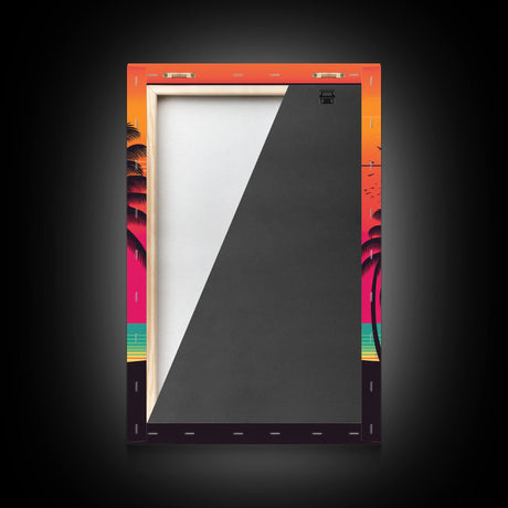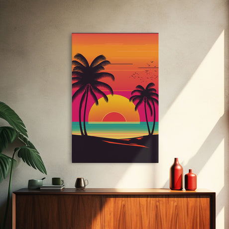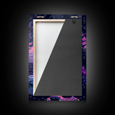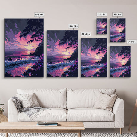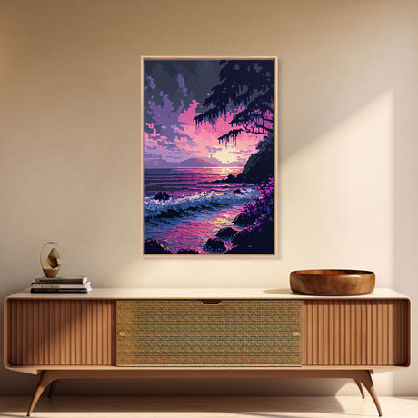 Pink Sunset, Vaporwave Aesthetic pixel art beach sunset, framed canvas print