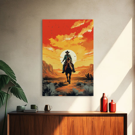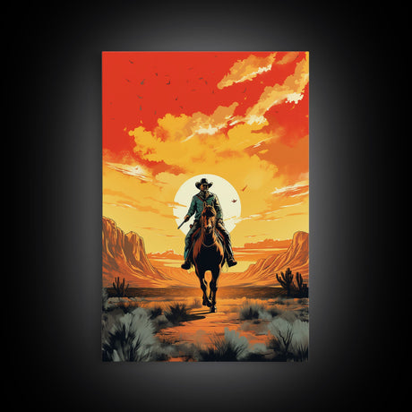 The Gun Fighter, Wild West Cowboy Art, Framed Canvas Print, Western Poster, Wild West Wall Art
