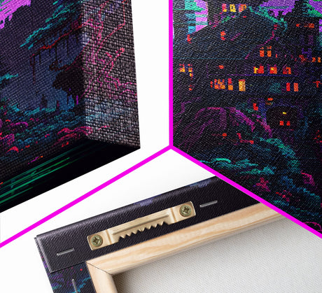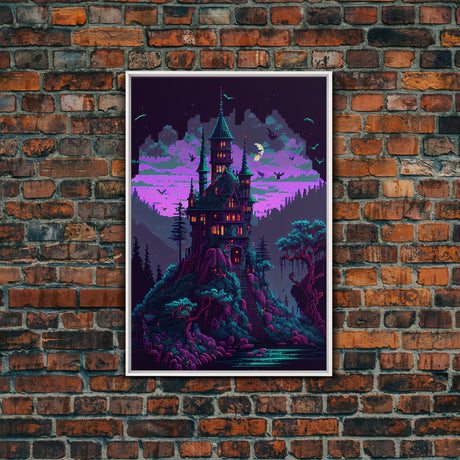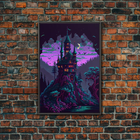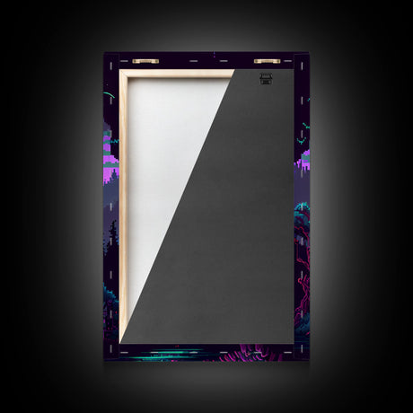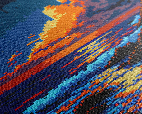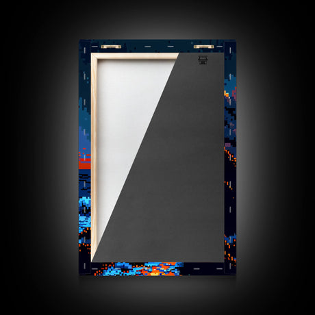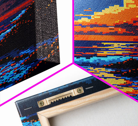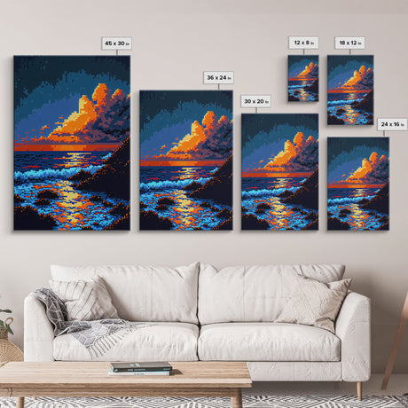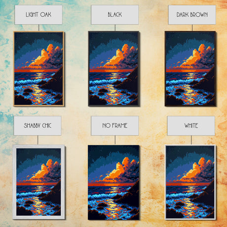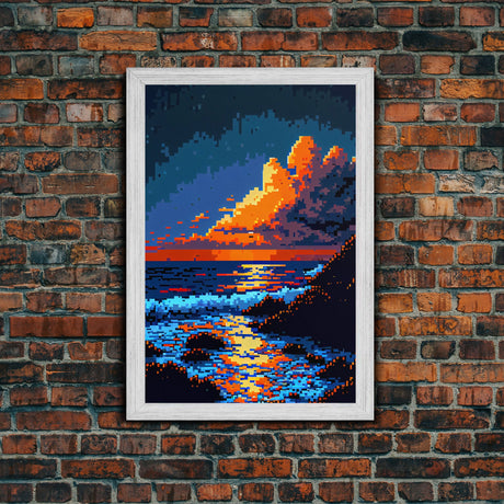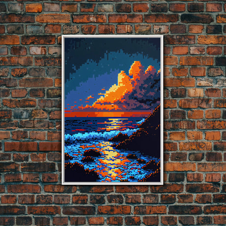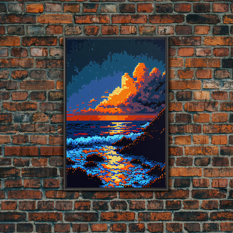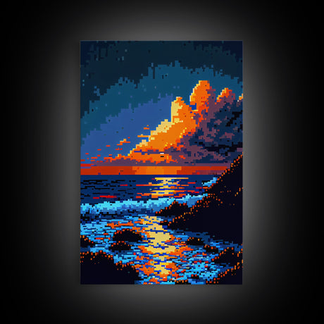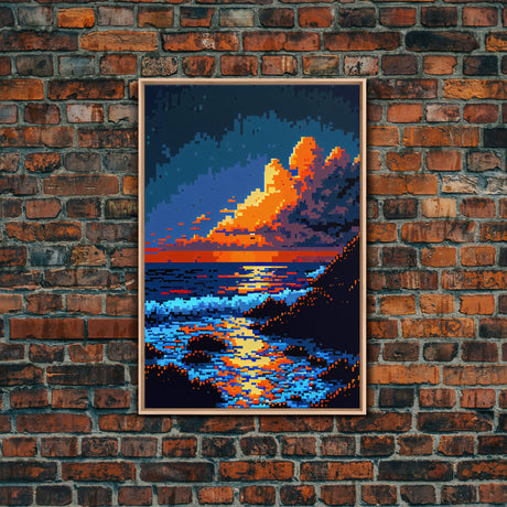 Pixel Art Sunset obscured by clouds, framed canvas print, 8 bit art