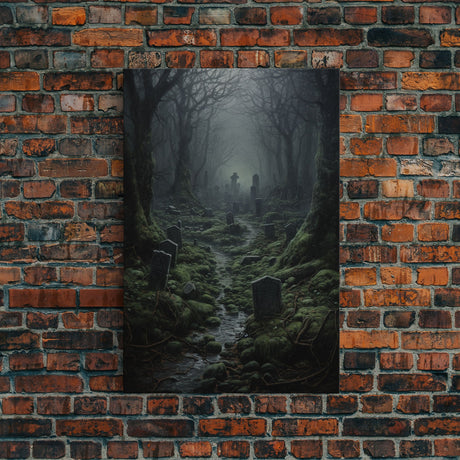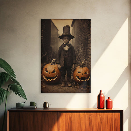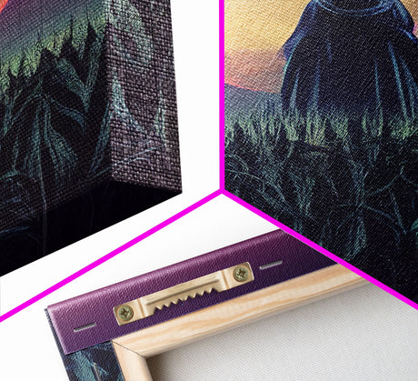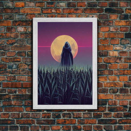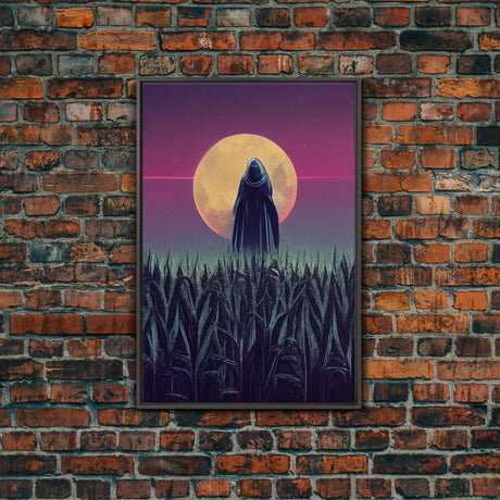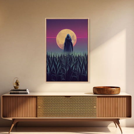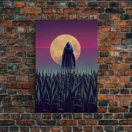 Spooky scarecrow in a corn field canvas print, full moon, Halloween art, scary art