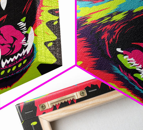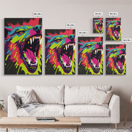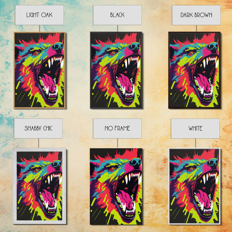 CHOMP! Wolf Bite! Framed Canvas Print, Unique Pop Art Style Animal Print