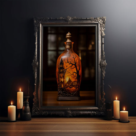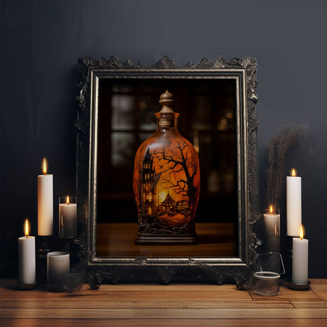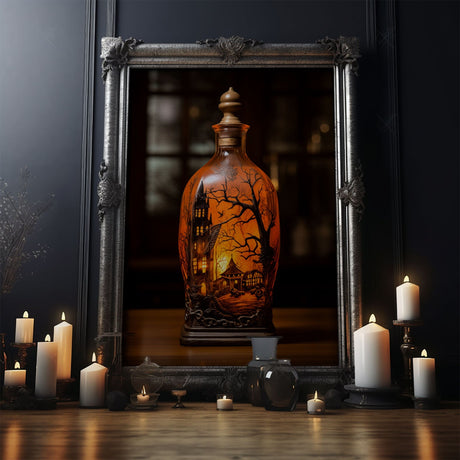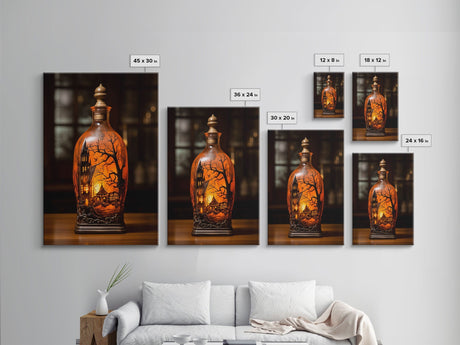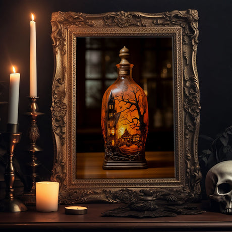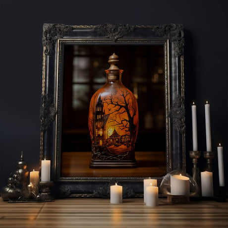 Spooky Jar - Haunted House In A Jar - Mini Worlds - Creepy Halloween Art - Framed Canvas Print