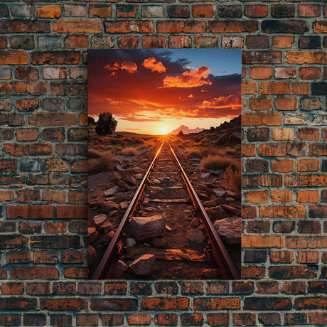 Abandoned Train Tracks Somewhere In The Arizona Desert, Framed Canvas Print, Western Decor