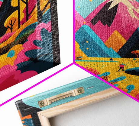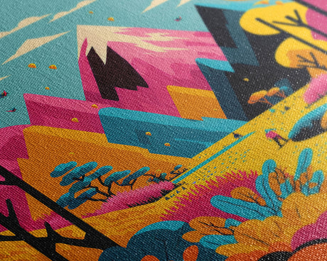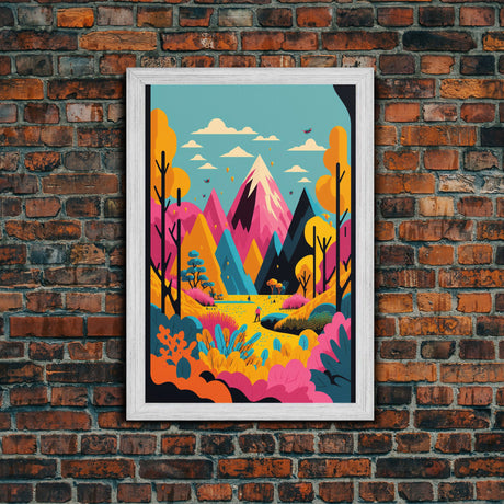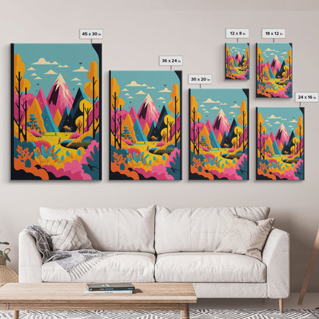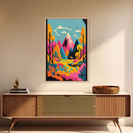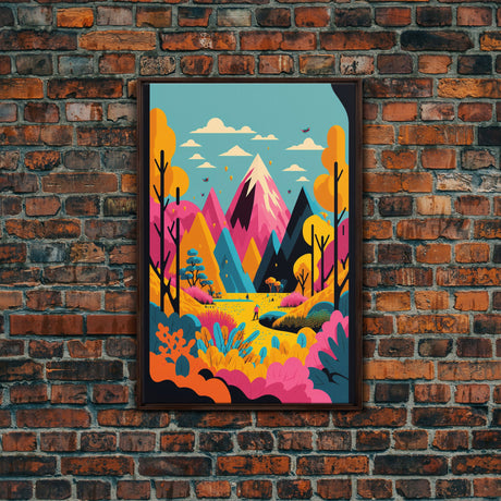 Trendy Pop Art, Surreal / Abstract Mountain Landscape, Fantasy Decor, Framed Canvas Print