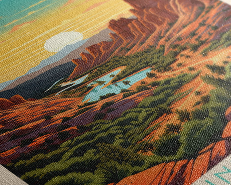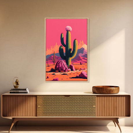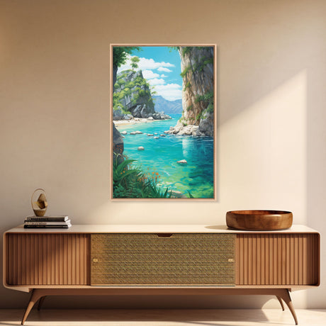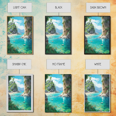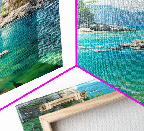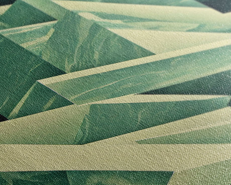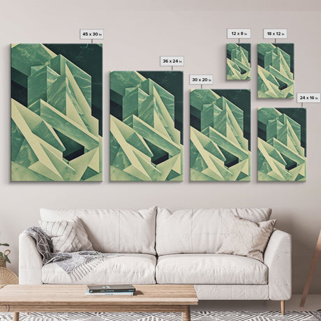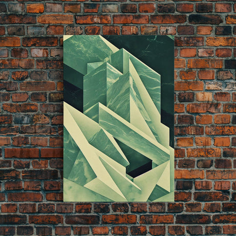 Cubism abstract geometric painting print, green marble shapes, framed canvas print