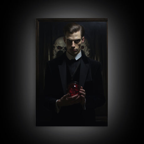 Portrait Of A Vampire Lestat, Framed Canvas Print, Spooky Halloween Art