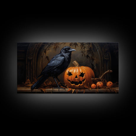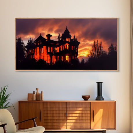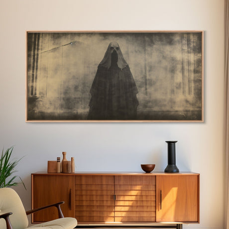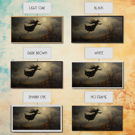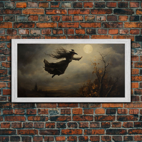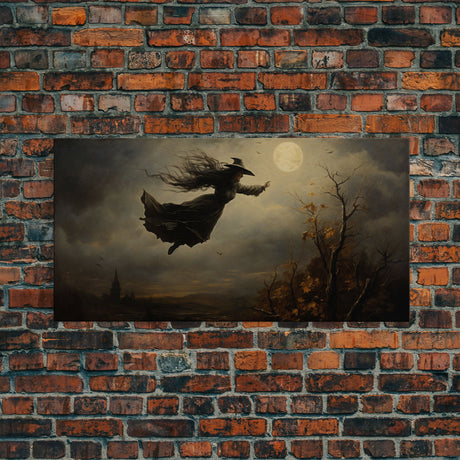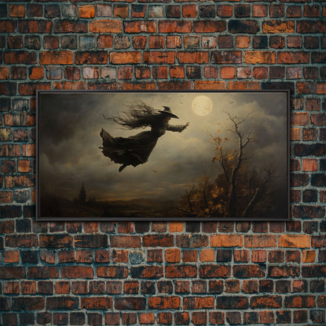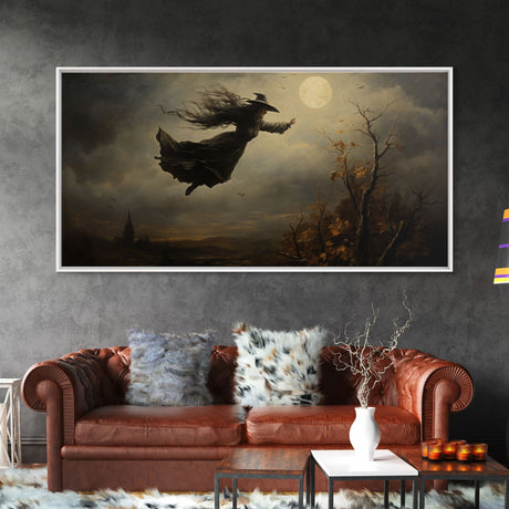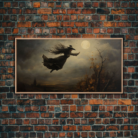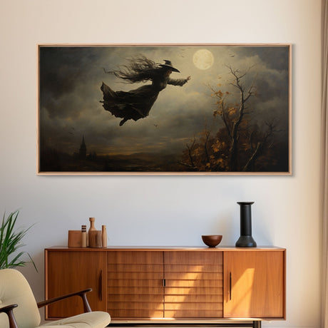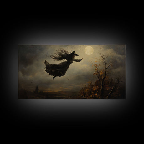 The Flying Witch, Framed Canvas Print, Halloween Wall Art, Horror Prints, Halloween Decoration