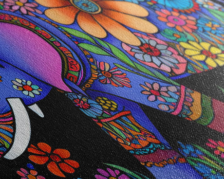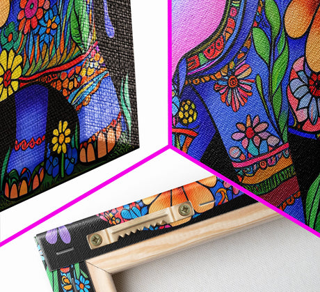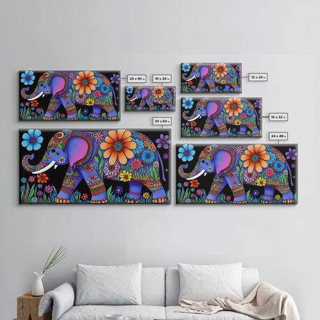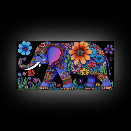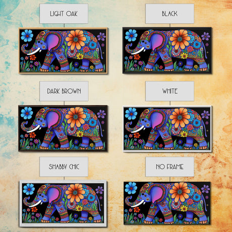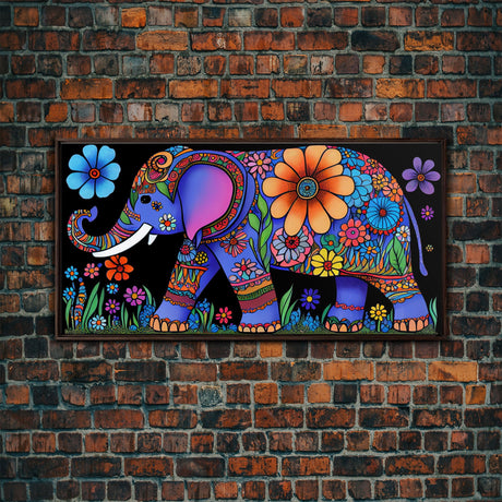 Elephant Art, Wall Art, Framed Canvas Print, Canvas Art, Indian Style Abstract Elephant With Flowers