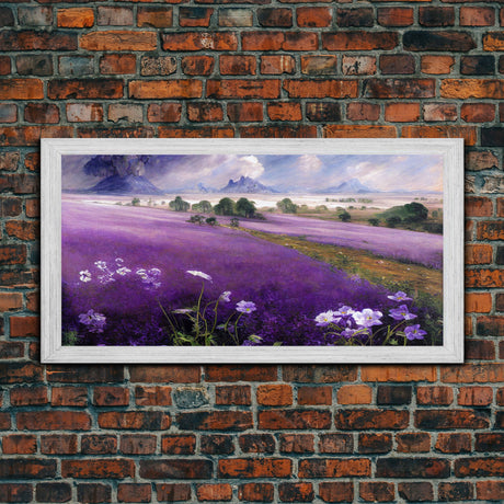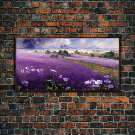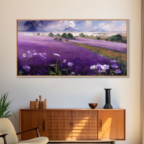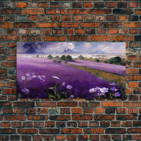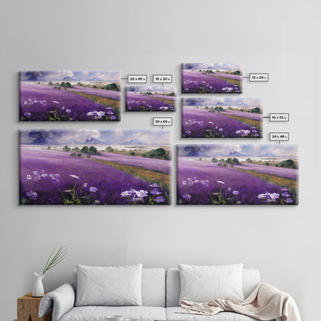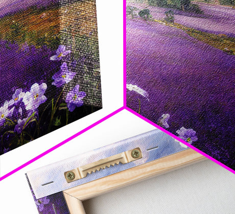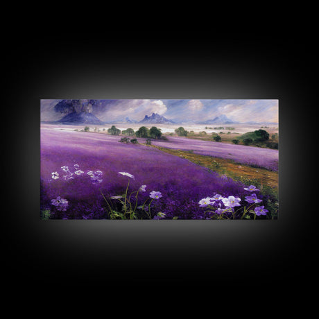 Purple Lavender Fields, Abstract Watercolor Art, Ready To Hang Canvas Print, Framed Wall Art