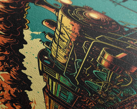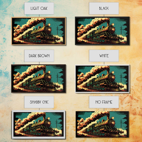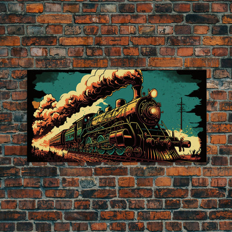 Pop Art Steam Train, Framed Canvas Print, Cool Wild West Decor, Western Art, Framed Colorful Pop Art