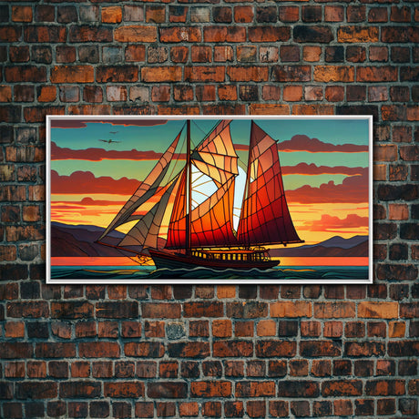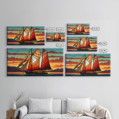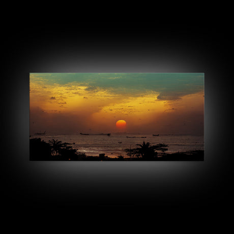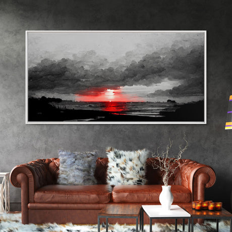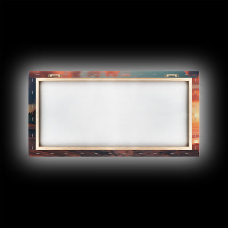 Row boat on a lake canvas print, sunset, watercolor, nature panoramic canvas print