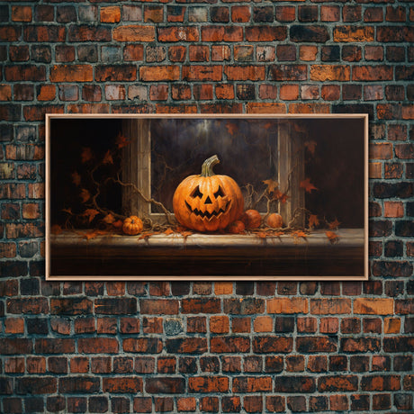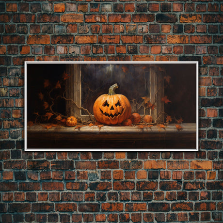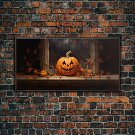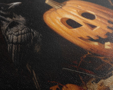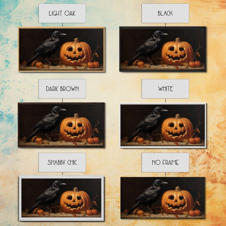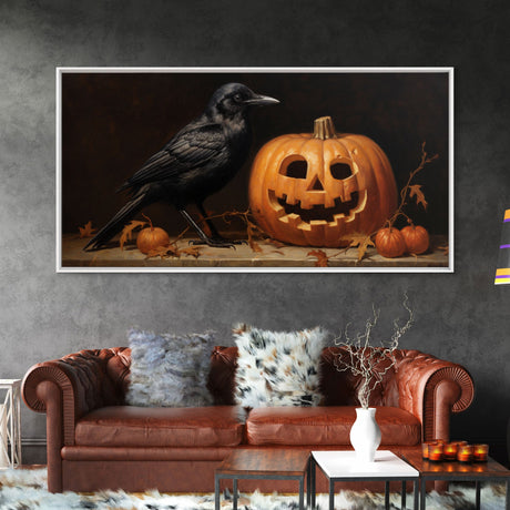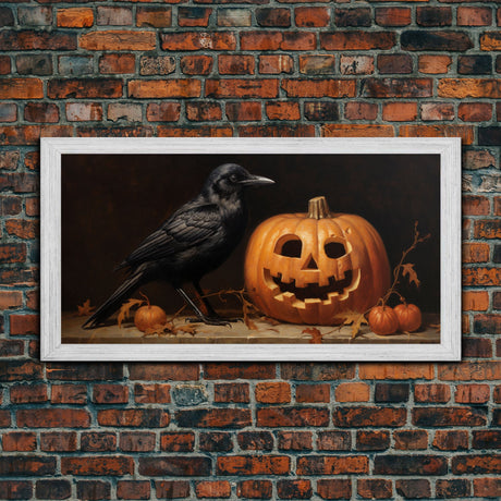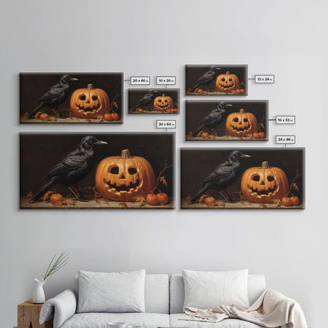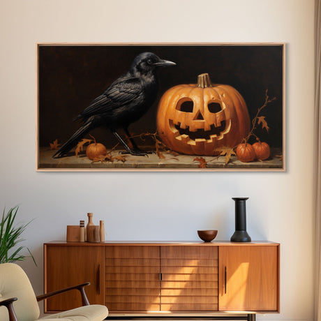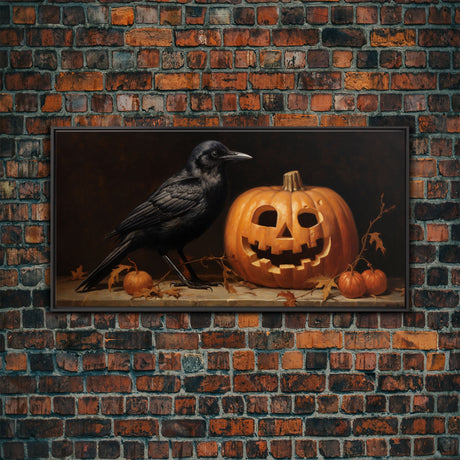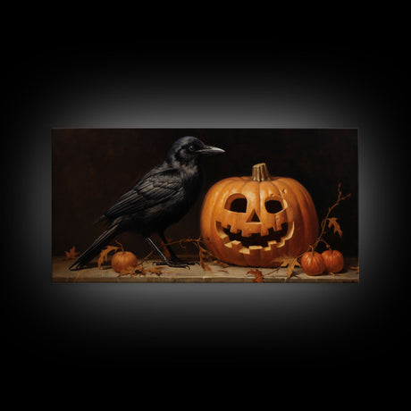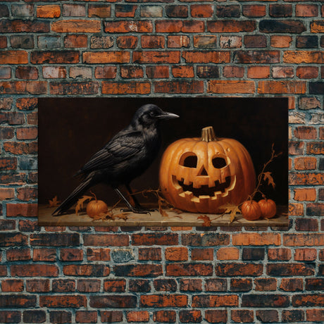 Spooky Crow Print, The Raven and The Jack O Lantern, Halloween Wall Art, Victorian Oil Painting