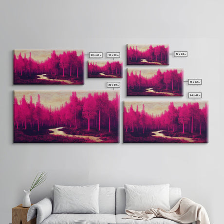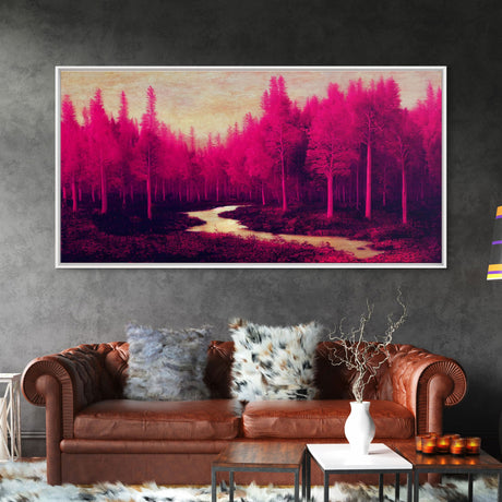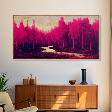Fuchsia Forest, Surreal Abstract Trippy Psychedelic Art, Ready To Hang Canvas Print, Framed Wall Art