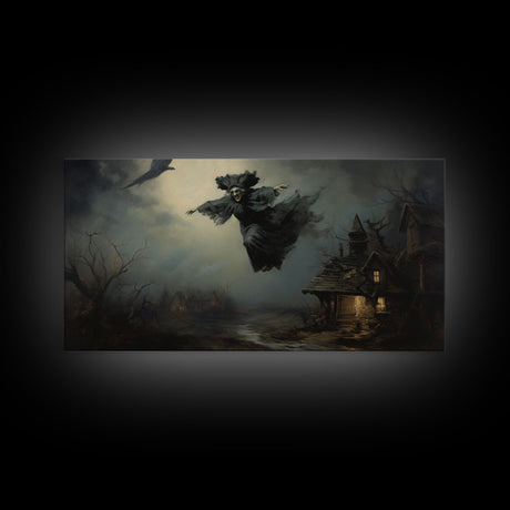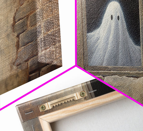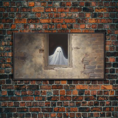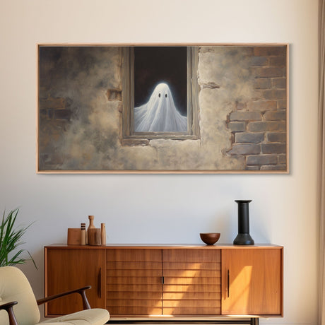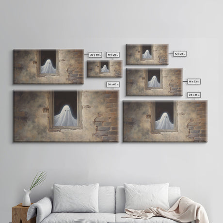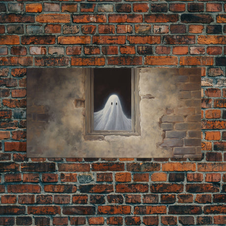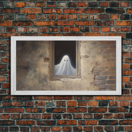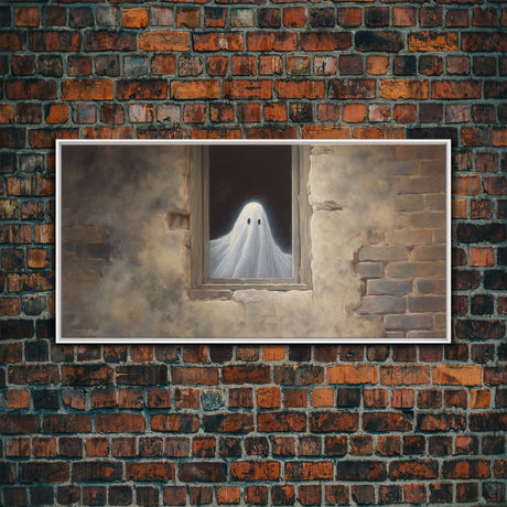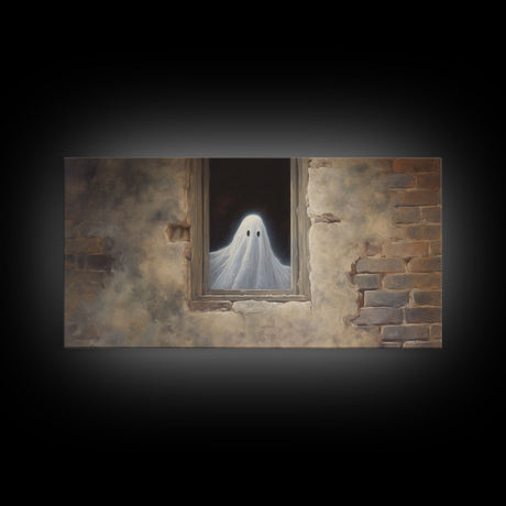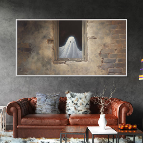 The Ghost In The Window, Funny Halloween Art, Ghost Print, Framed Canvas Art