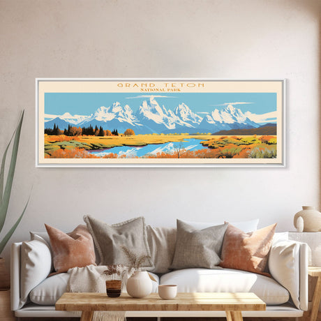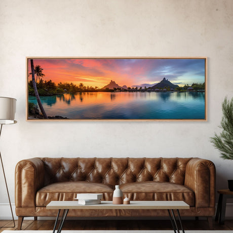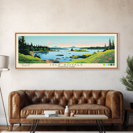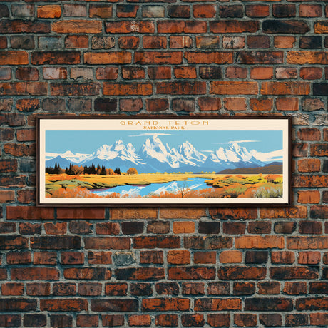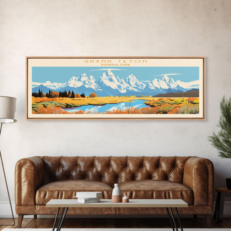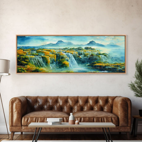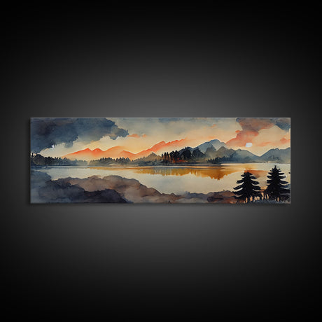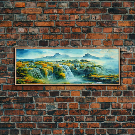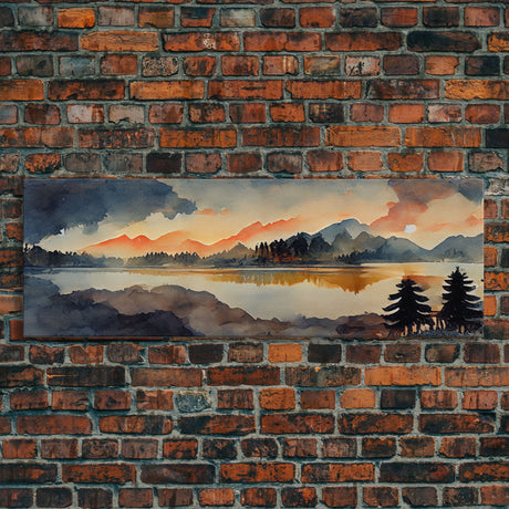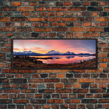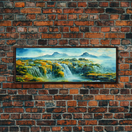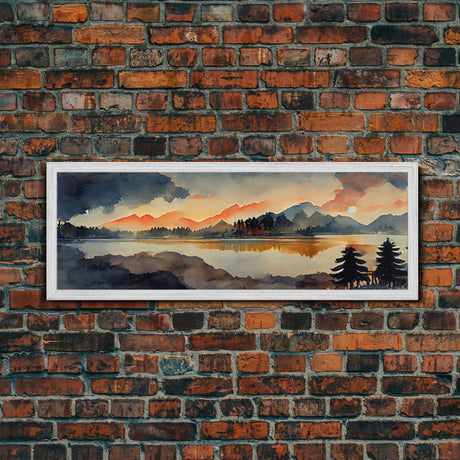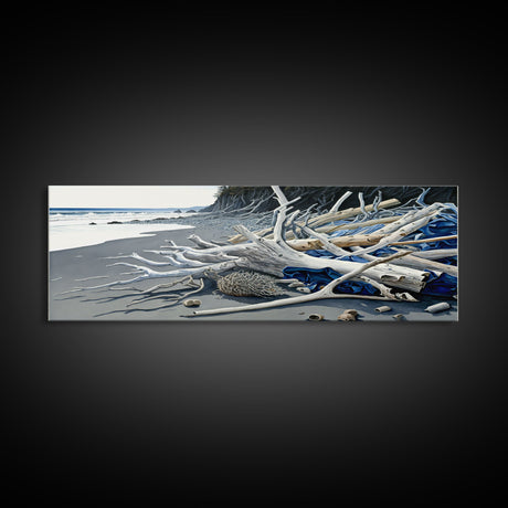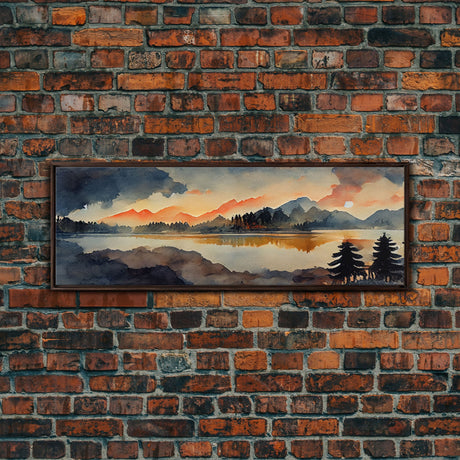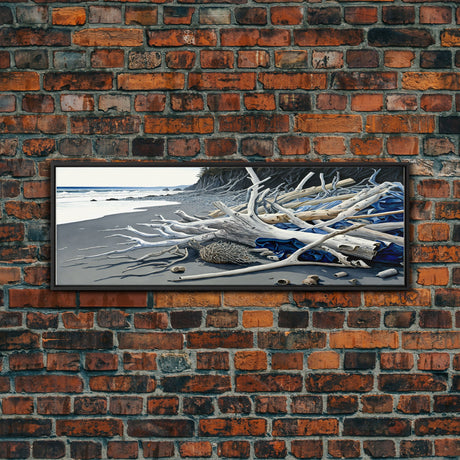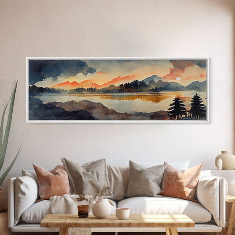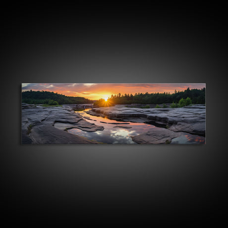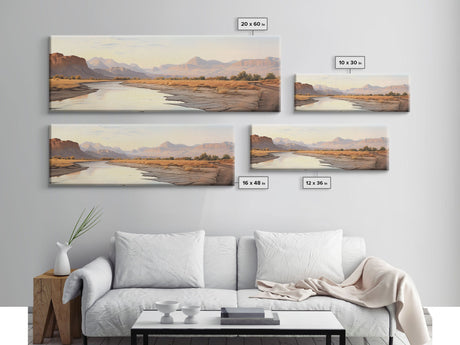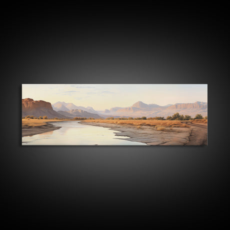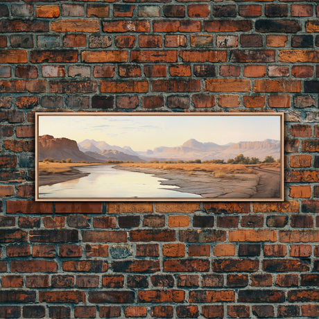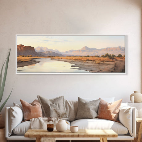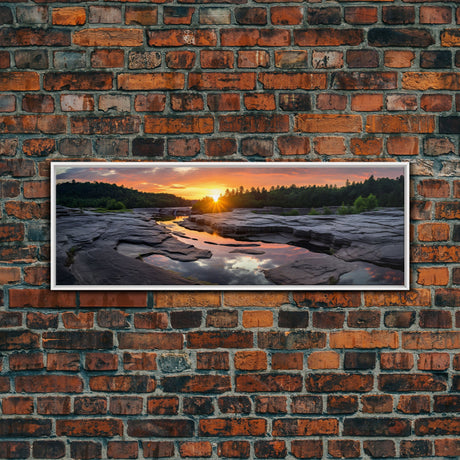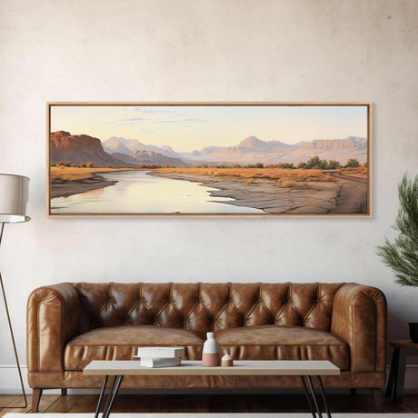 Log Floating Down A River, Extra Large Wall Art, Framed Panoramic Canvas Print, Framed Wall Decor