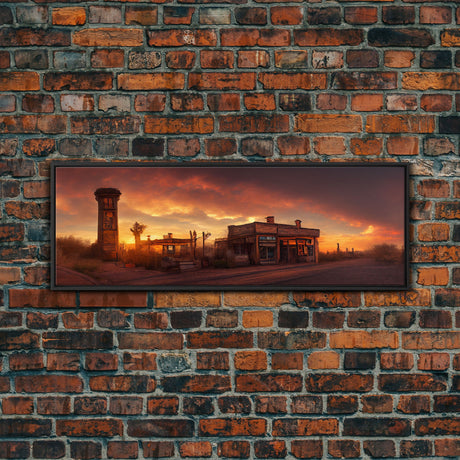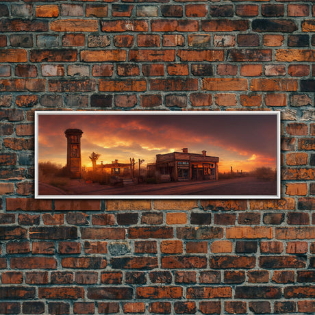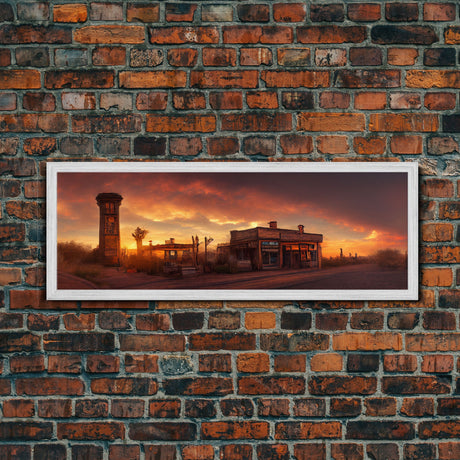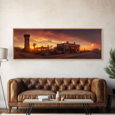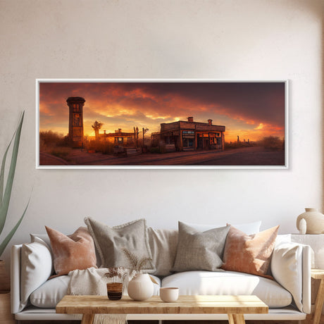 Wild West Abandoned Saloon, Extra Large Wall Art, Framed Panoramic Canvas Print, Framed Wall Art