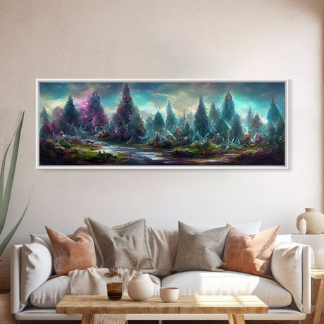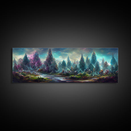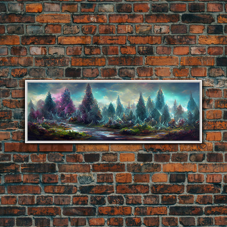High Fantasy Forest Wall Art, Ready To Hang Canvas Print, Panoramic Art, Fantasy RPG Concept Art