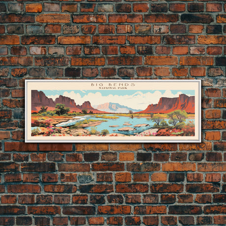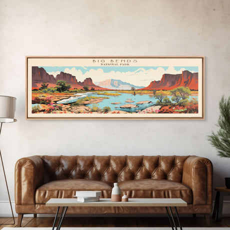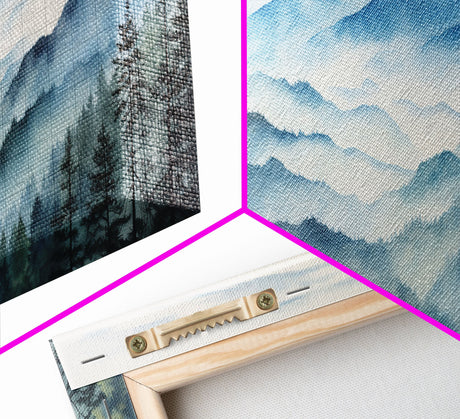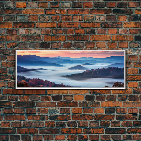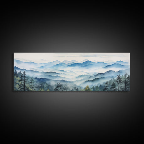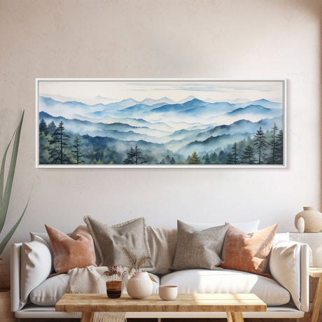 Blue Ridge Mountains National Park Panoramic Watercolor Painting Framed Canvas Print Large Wall Art