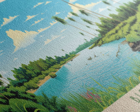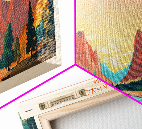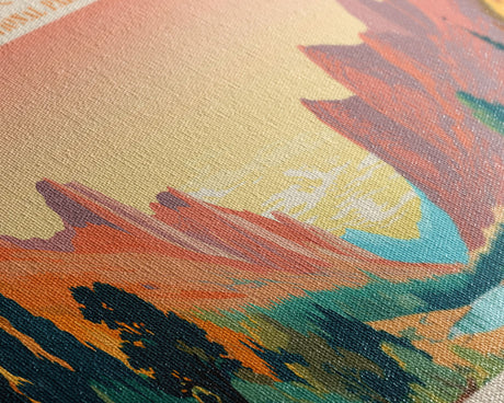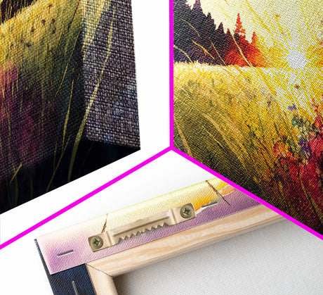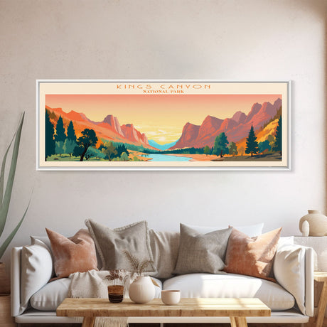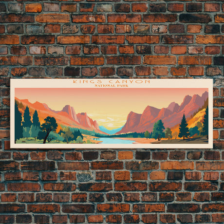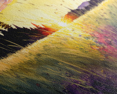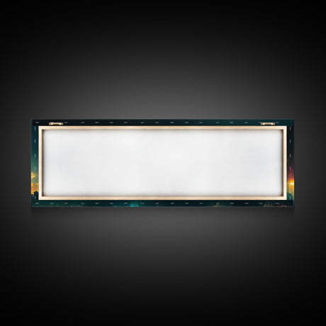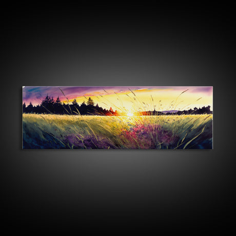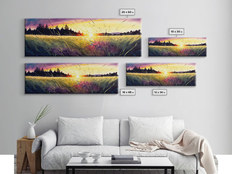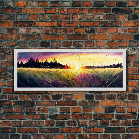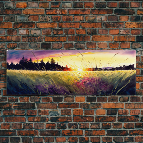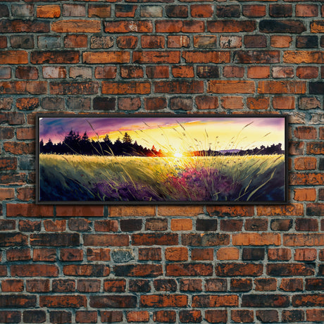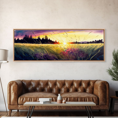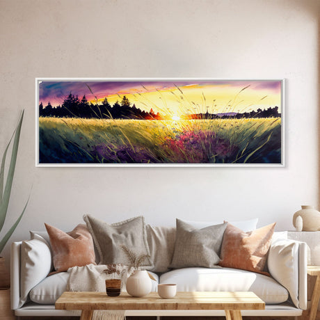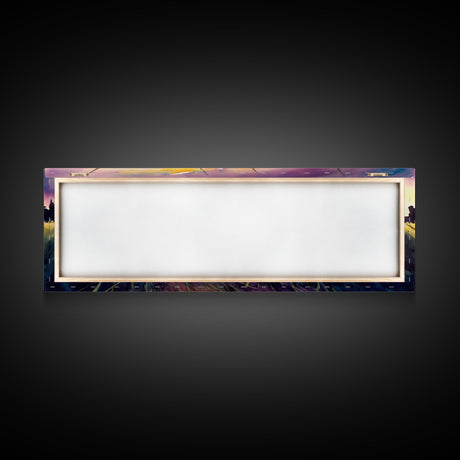 Prehistoric Abstract Landscape Art, Ready To Hang Canvas Print, Panoramic Art, Dinosaurs At Sunset