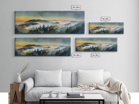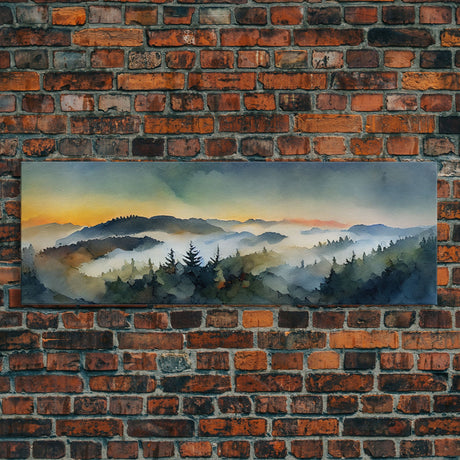 Beautiful Watercolor Landscape, Ready To Hang Canvas Print, Panoramic Art, Above Sofa Wall Art