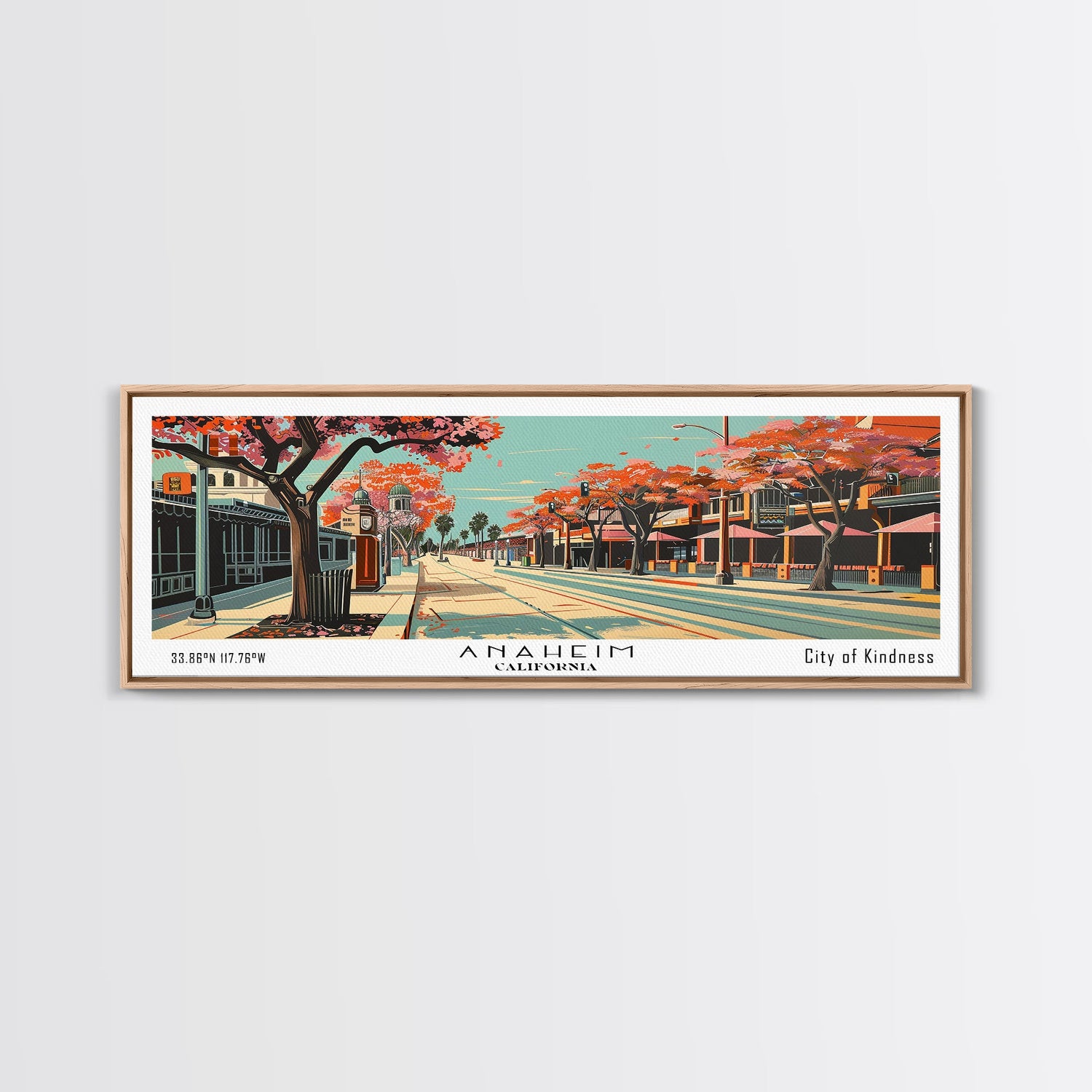 Anaheim California Panoramic Painting, Framed Canvas Print, Mid Century Modern Wall Art, Retro Pop Art Travel Poster, Office Decor, City Art