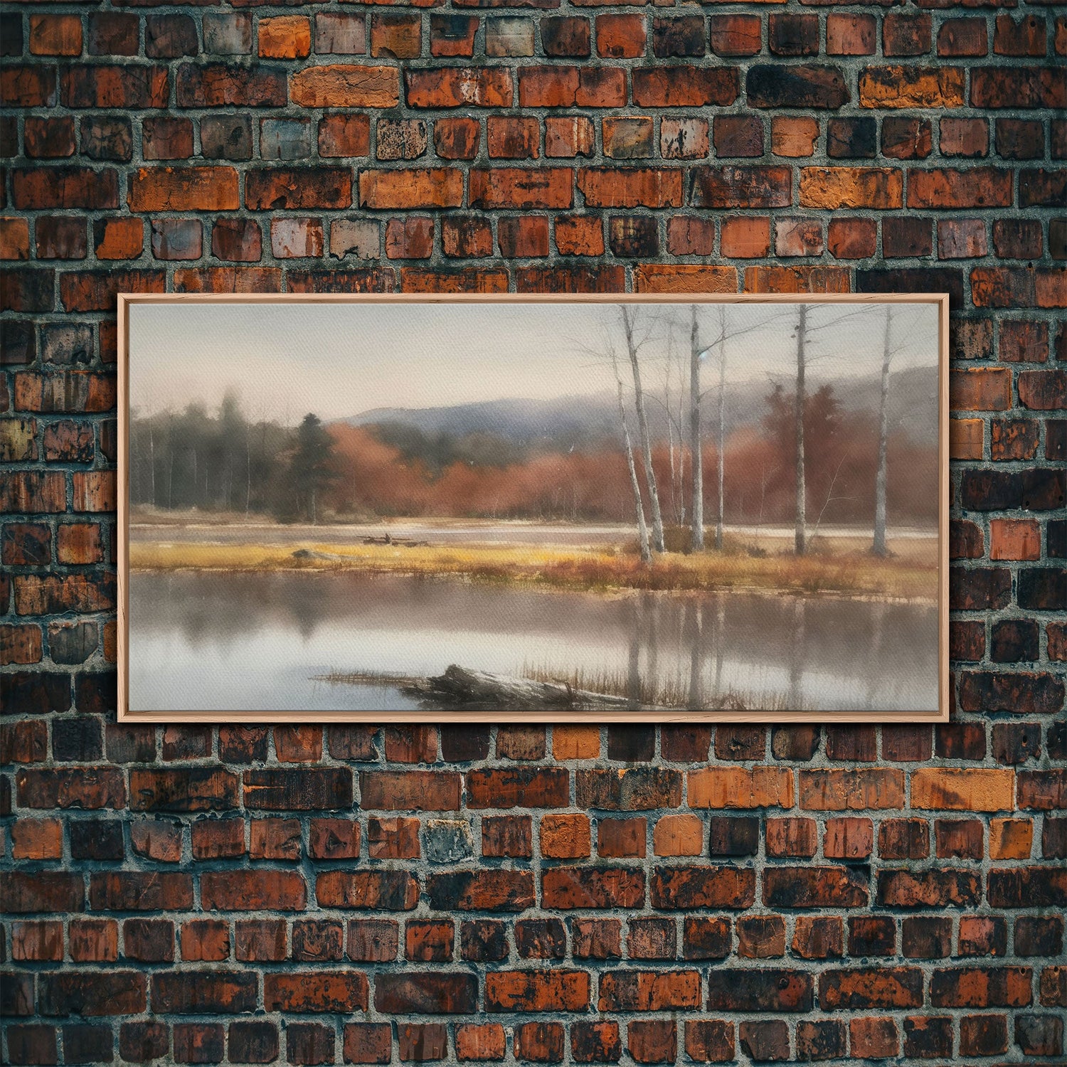 Autumn Landscape Wall Decor, Creek Wall Art, Nature Painting Wall Decor, Panoramic Wall Decor, Canvas Print, Wall Art, Framed Canvas Art