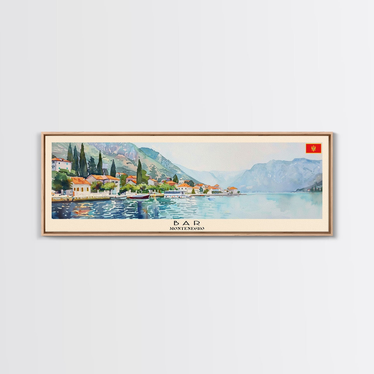 Bar Montenegro Travel Print Wall Art, Panoramic City Art, Travel Art, Wall Decor, Vacation Gift, Framed Canvas Print Or Metal Art - 10x30 Inches / Gallery Wrap Canvas - Ready To Hang is backordered and will ship as soon as it is back in stock.