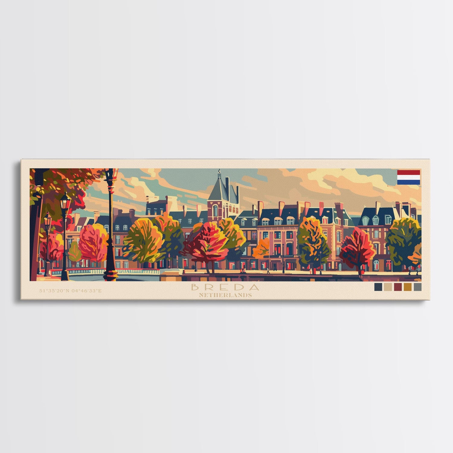 Breda Netherlands Panoramic Travel Poster, Framed Canvas Print or Metal Wall Art, Travel Art, Home Decor, Panoramic Painting, Midcentury Art