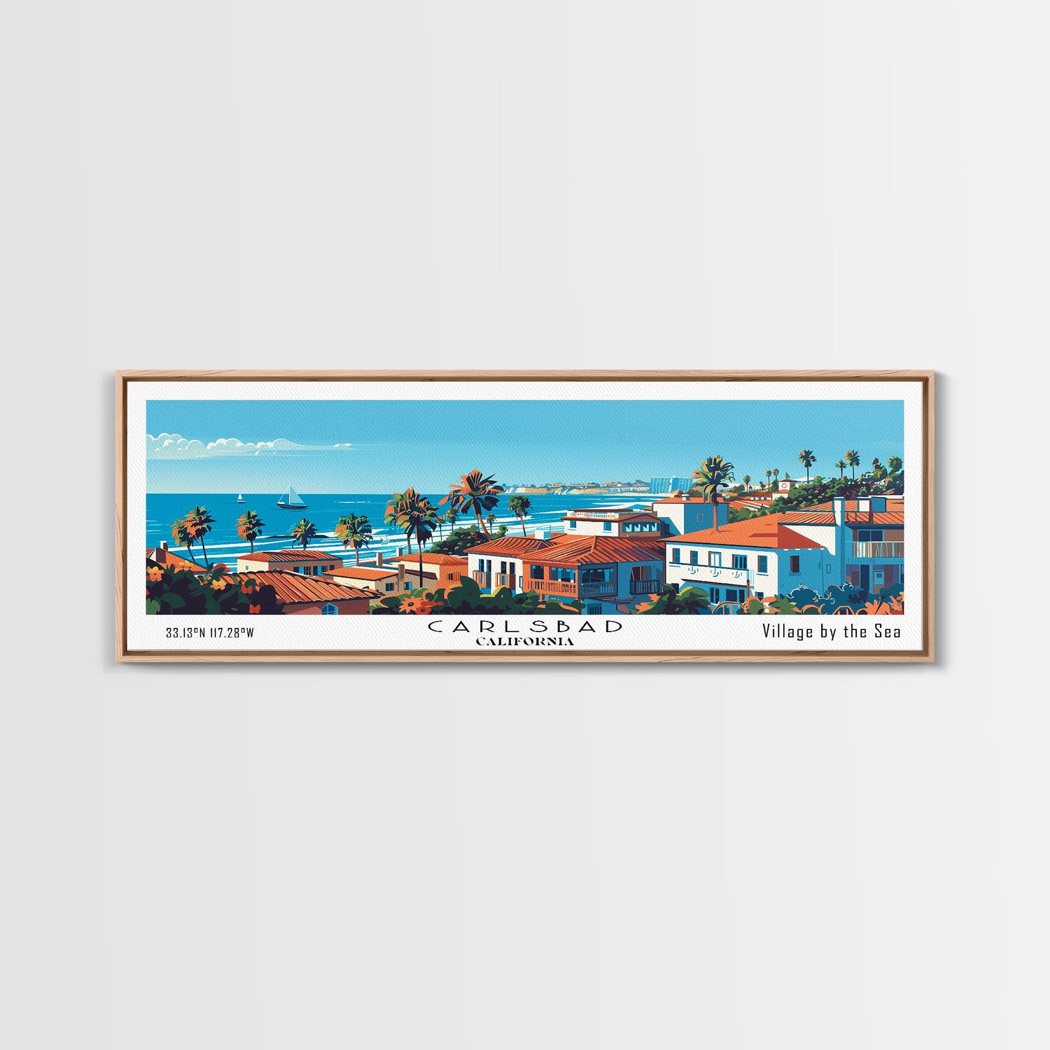 Carlsbad California Panoramic Painting, Mid Century Modern Framed Canvas Print, Retro Pop Art Travel Poster, Living Room Wall Art, City Print