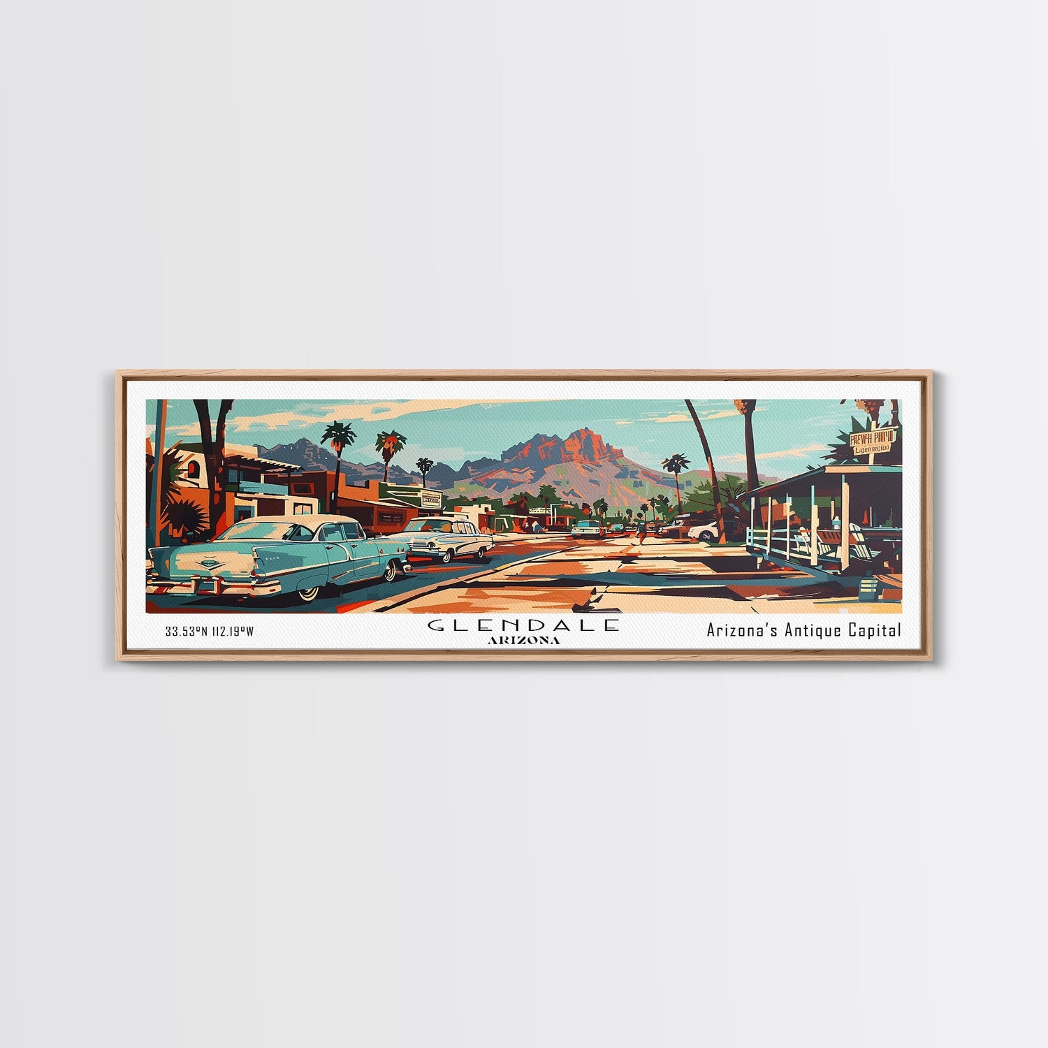 Glendale Arizona Panoramic Wall Art, Mid Century Modern Framed Canvas Print, Retro Pop Art Travel Poster, Home Decor, Office Wall Art, Gift Idea