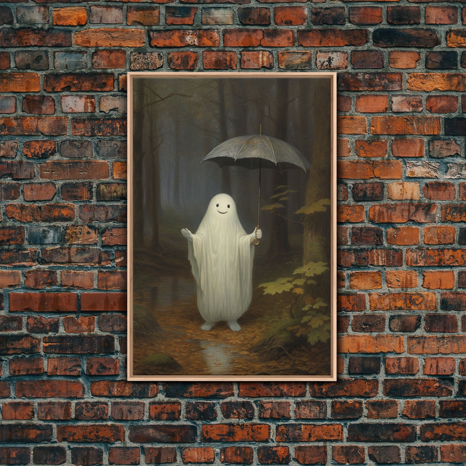 Goofy Ghost In The Rain, Vintage Halloween Canvas, Framed Canvas Print, Cute Wall Art, Who's Haunting Who?