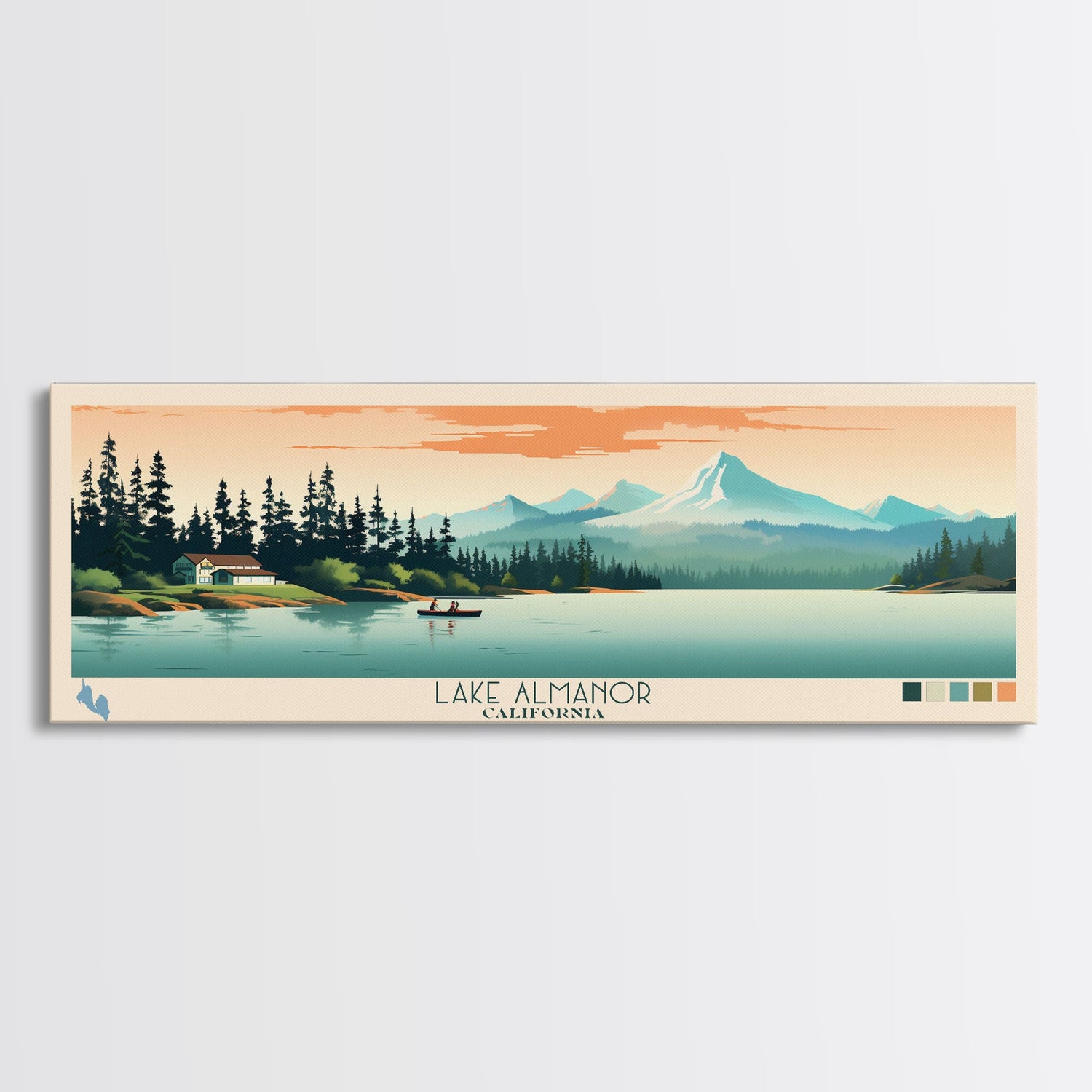 Lake Almanor California Framed Canvas Print, Panoramic Art, Midcentury Modern, Pop Art, Living Room Wall Art, Travel Poster, Lake House Decor