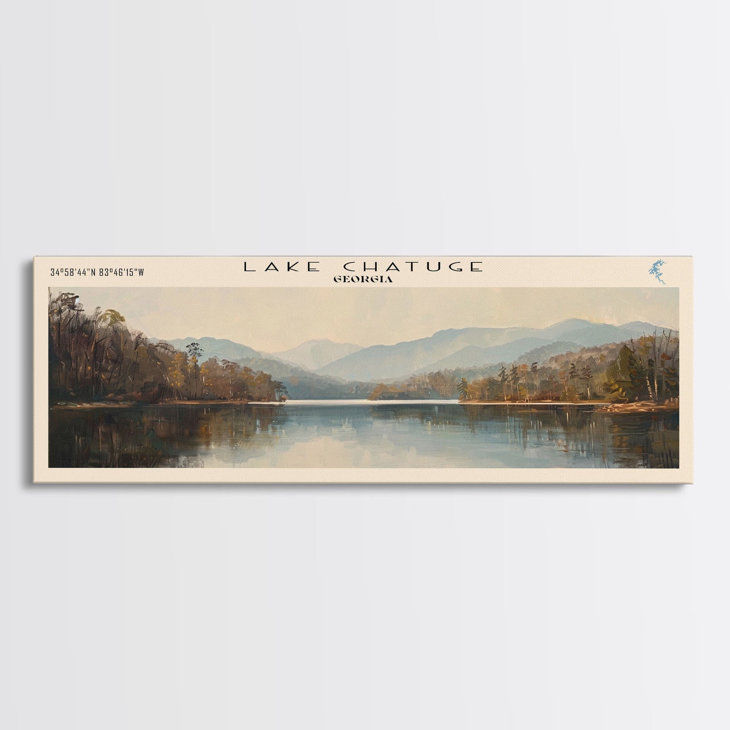 Lake Chatuge Georgia Framed Canvas Print, Lake House Decor, Panoramic Wall Art, Travel Poster, Serene Lake Painting, Nature Art