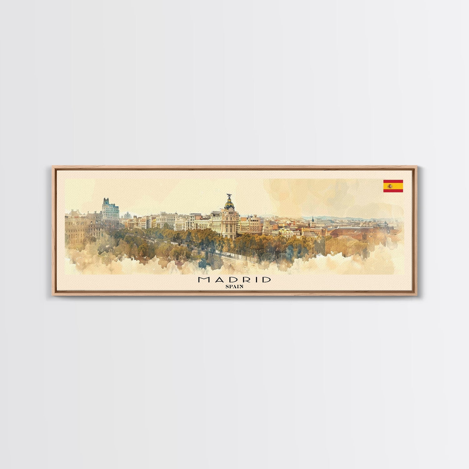 Madrid Spain Panoramic Travel Poster, Framed Canvas Print or Metal Wall Art, Travel Art, Home Decor, Panoramic Painting, Midcentury Art