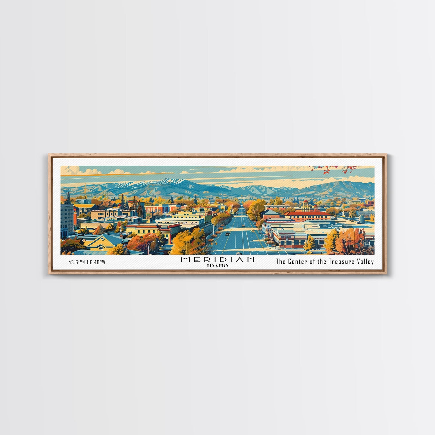 Meridian Idaho Panoramic Painting, Mid Century Modern Framed Canvas Print, Retro Pop Art Travel Poster, Home Decor