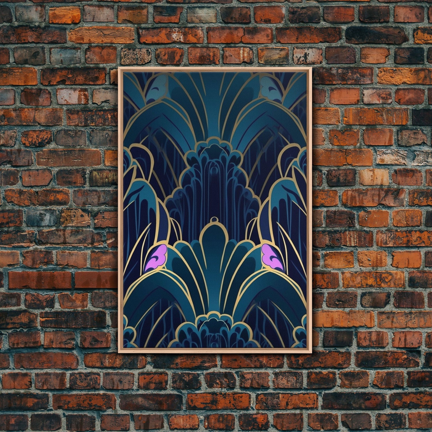 Midcentury Modern Wall art, Framed Canvas Print, Art Deco, Patterns art, Abstract nature, Blue & gold art, Lines art, Colorful painting