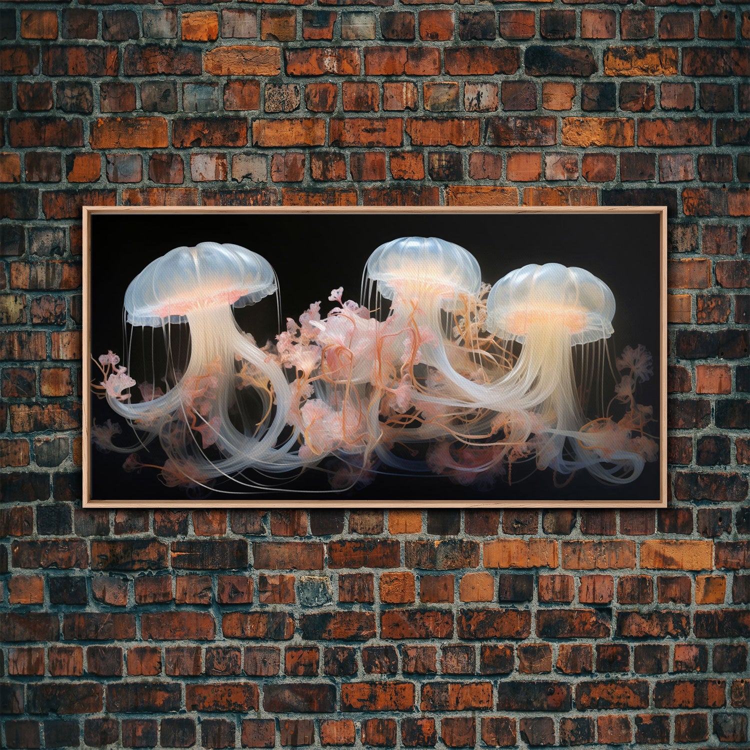 Ocean Wall Art, Jelly Fish Art, Nautical Wall Art, Panoramic Art, Wall Art, Canvas Art, Landscape Art, Gift For Him, Dorm Room Art, Prints