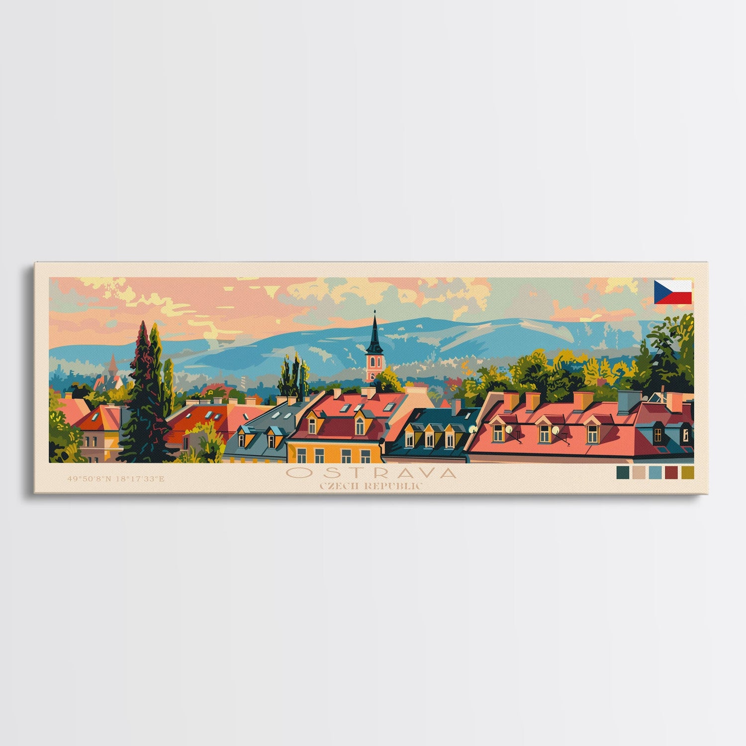 Ostrava Czech Republic Wall Art, Panoramic Travel Poster, Panoramic Framed Canvas Print, City Wall Art, Wall Hanging Home Decor, Travel Art