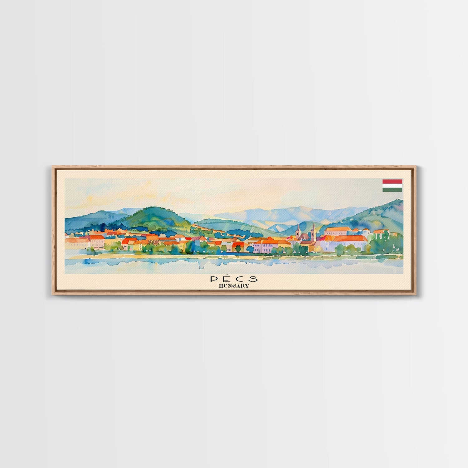 Pécs Hungary Panoramic Travel Poster, Framed Canvas Print or Metal Wall Art, Travel Art, Home Decor, Panoramic Painting, Midcentury Art