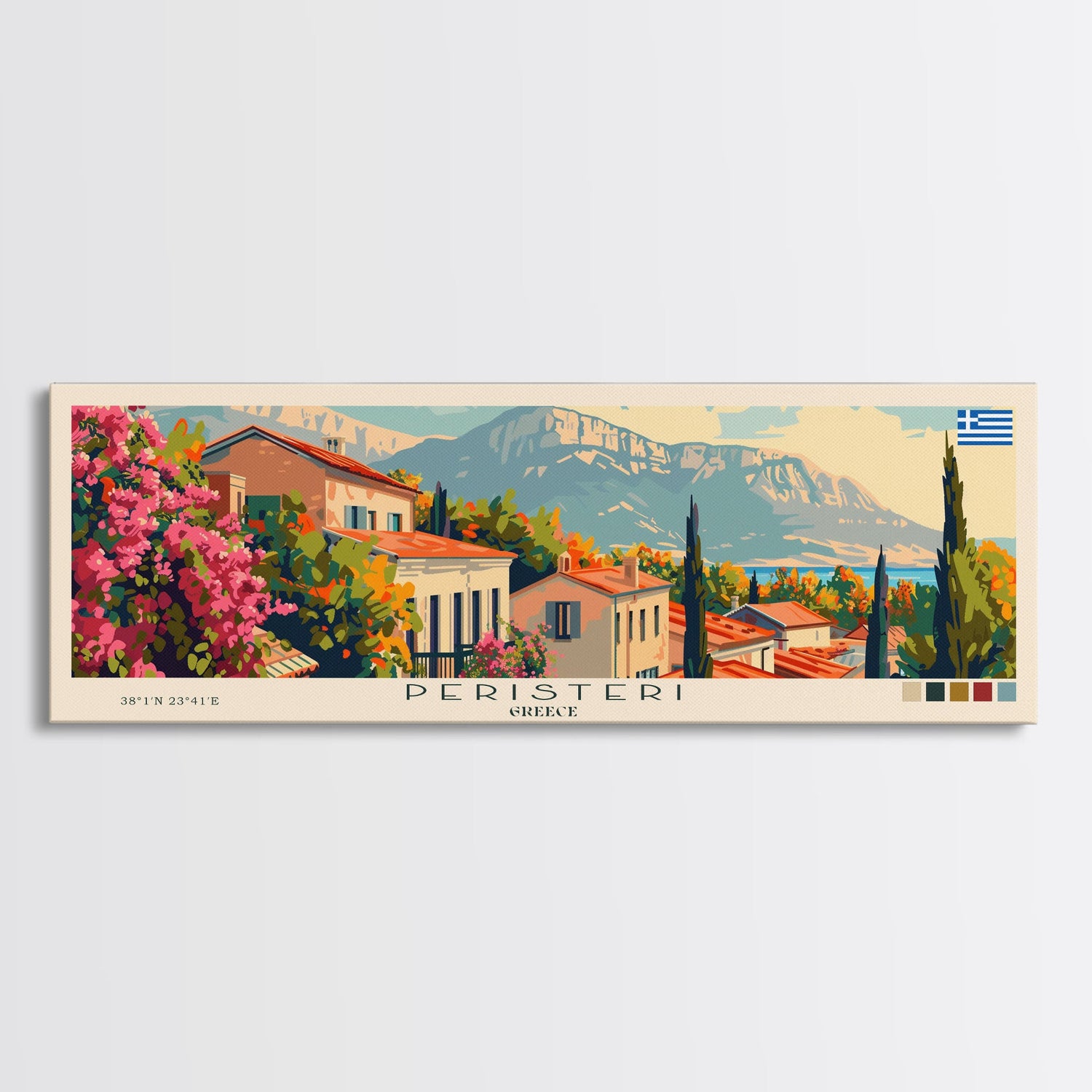 Peristeri Greece Travel Print Wall Art, Panoramic City Art, Travel Art, Wall Decor, Vacation Gift, Framed Canvas Print Or Metal Art