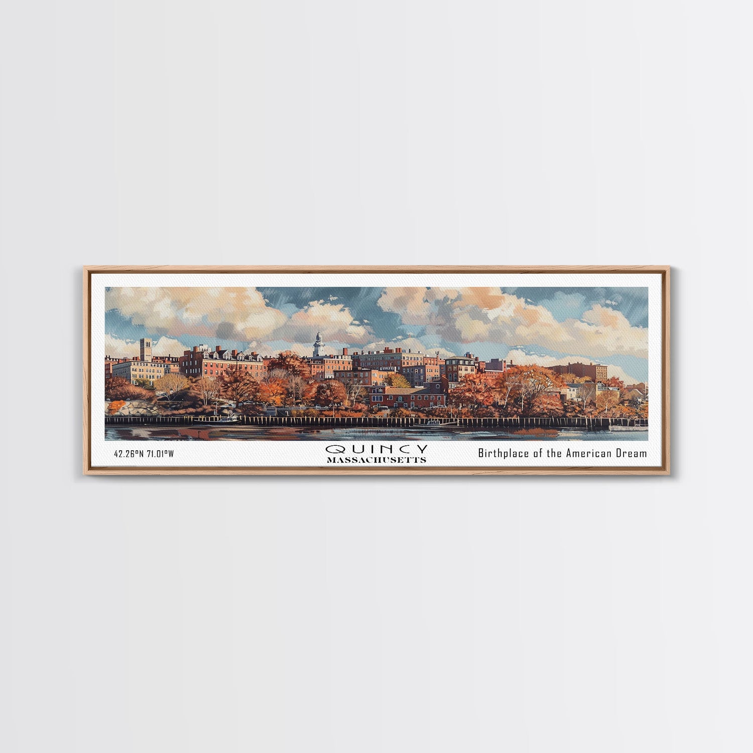 Quincy Massachusetts Panoramic Print, Creative Framed Canvas Print, City Travel Poster, Wall Art, Home Decor, Unique Gift