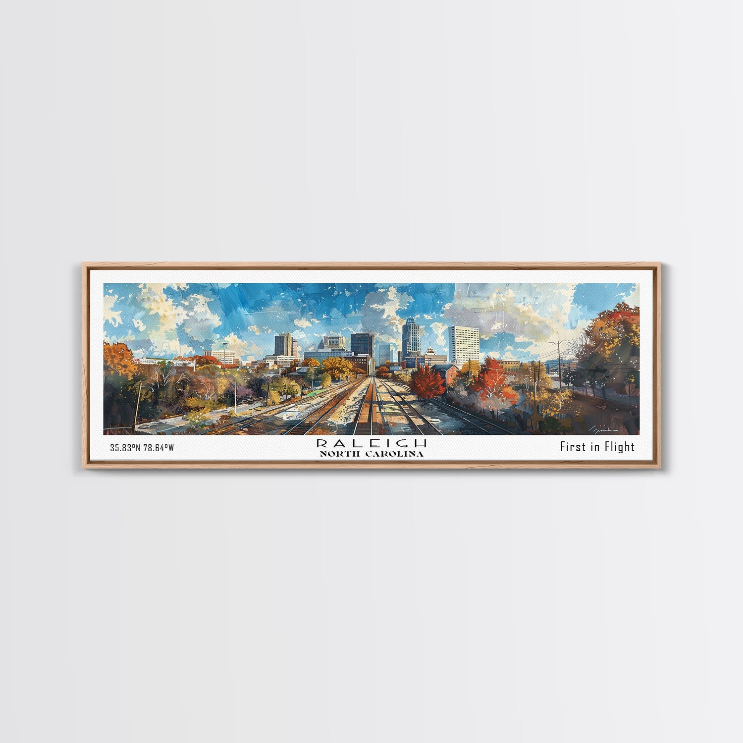 Raleigh North Carolina Panoramic Print, Beautiful Framed Canvas Print, Travel Poster Art, Living Room Decor, Office Wall Art