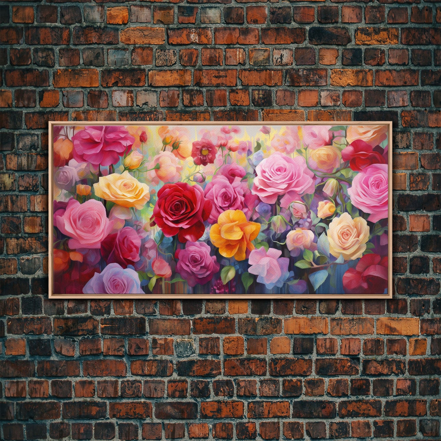 Roses Wall Art, Flowers Wall Print, Vibrant Wall Art, Panoramic Art, Wall Art, Canvas Art, Landscape Art, Birthday Gift, Farmhouse Wall Art