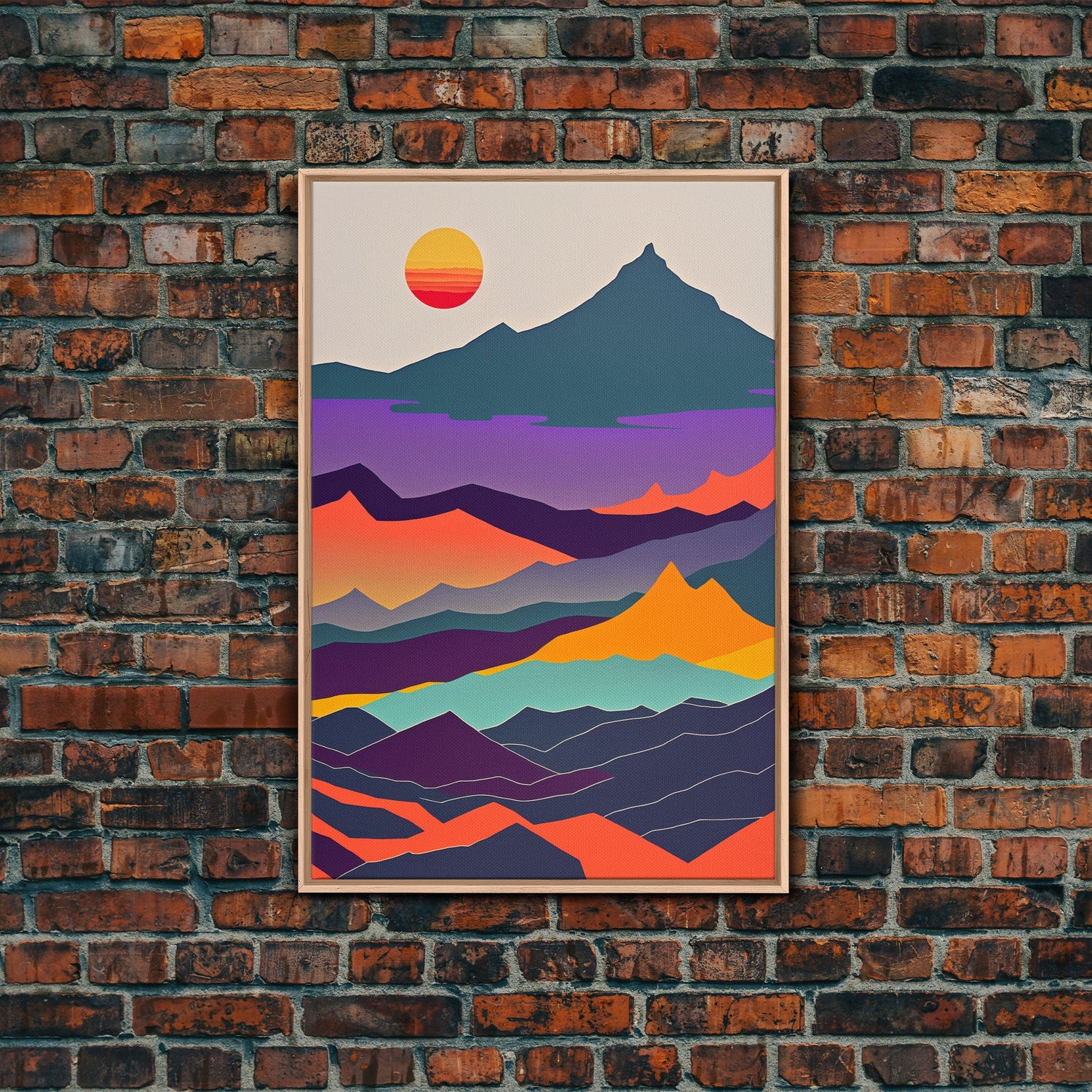 Scandinavian Inspired Pacific Northwest Art, Minimalist Boho Style Forest Landscape, Framed Canvas Art, Abstract Art, Purple Mountains