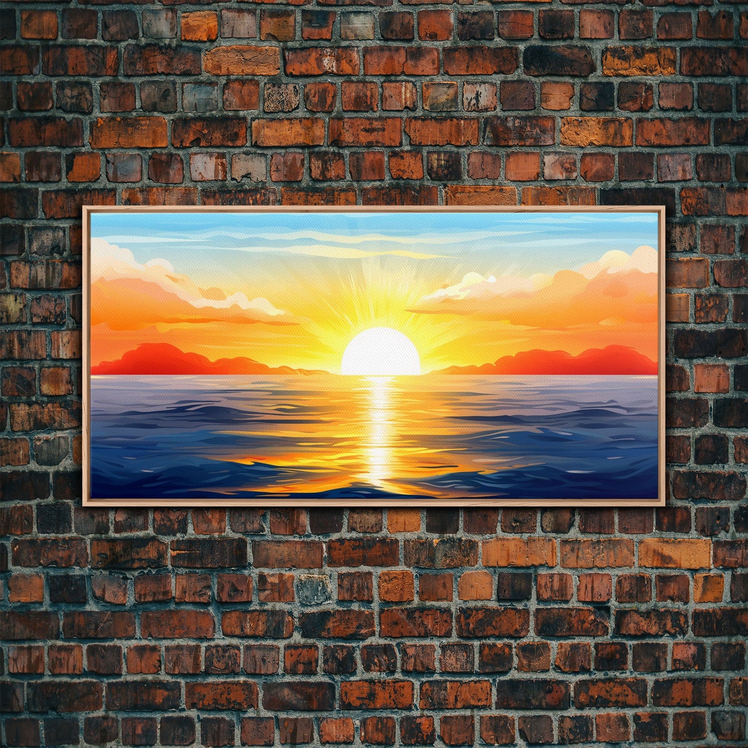 Sunset Painting Wall Decor, Ocean Art, Seascape Wall Decor, Nature Print, Panoramic Wall Decor, Canvas Print, Wall Art, Framed Canvas Art