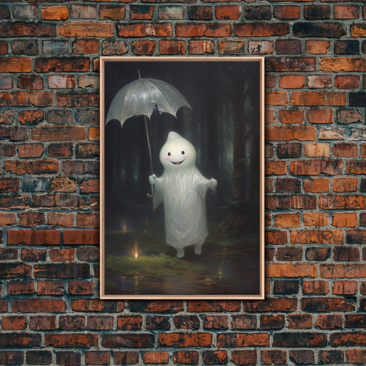 The Playground Ghost, Funny Halloween, Vintage Halloween Canvas, Framed Canvas Print, Cute Wall Art, Ghost On A Swing, Macabre Goth Art