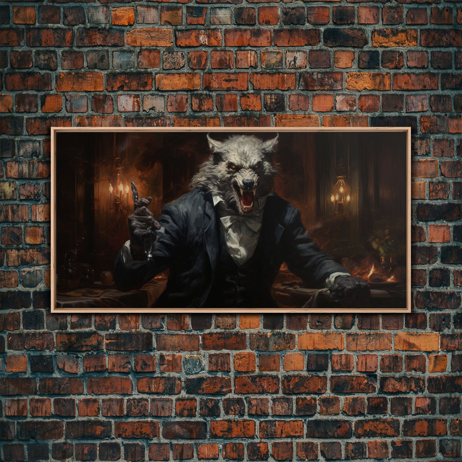 The Victorian Gentleman Werewolf, Halloween Art Print, Framed Canvas Art, Halloween Poster Print, Victorian Dark Academia Oil Painting - 10x20 Inches / Gallery Wrap Canvas - Ready To Hang is backordered and will ship as soon as it is back in stock.
