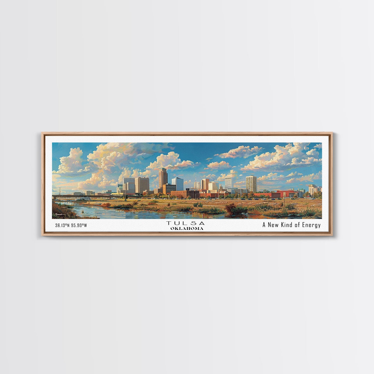Tulsa Oklahoma Panoramic Framed Canvas Print, Retro Wall Art, Travel Poster, Artistic Living Room Decor, Unique Office Gift, Original Artwork
