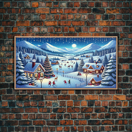 Spooky Haunted House, Panoramic Wall Art Canvas Print, Ready To Hang, Creepy Wall Decor, Gloomy Art
