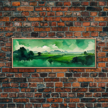 Emerald Green Forest Landscape, Panoramic Art, Framed Canvas, Framed Wall Art, Wall Art With Frame